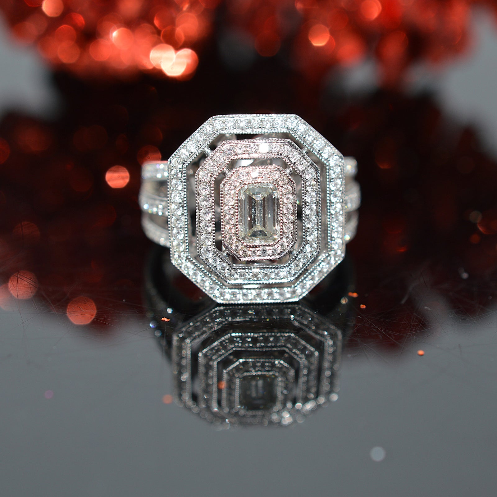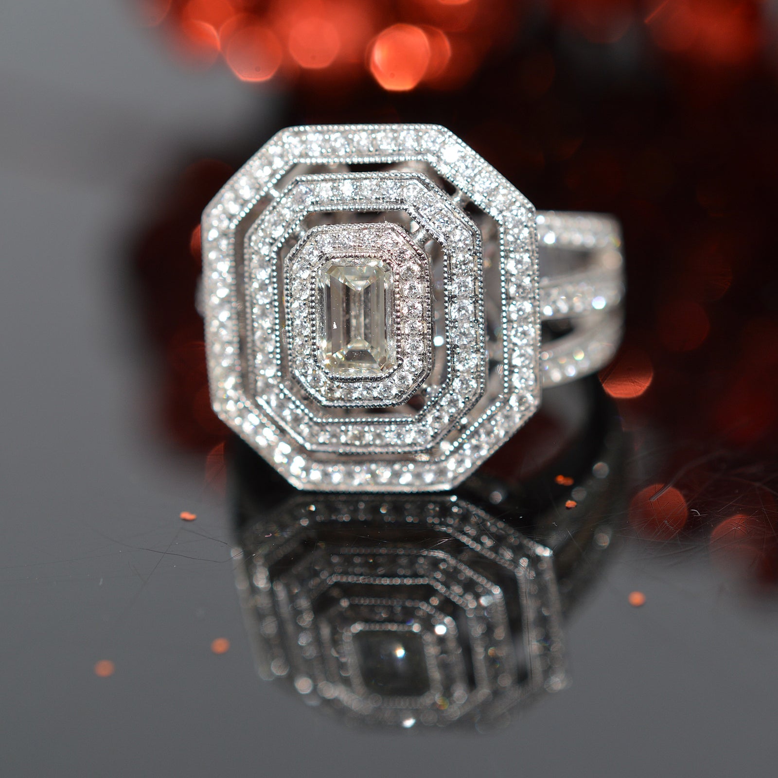 $1,350.00 USD18K White Gold 1.44 Carat Total Weight Diamond Ring With Triple Halo