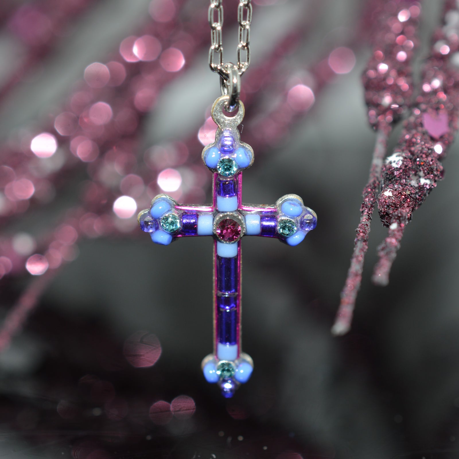 Sold OutAntique Silver Plated Simple Purple Crystal Cross Pendant by Firefly
