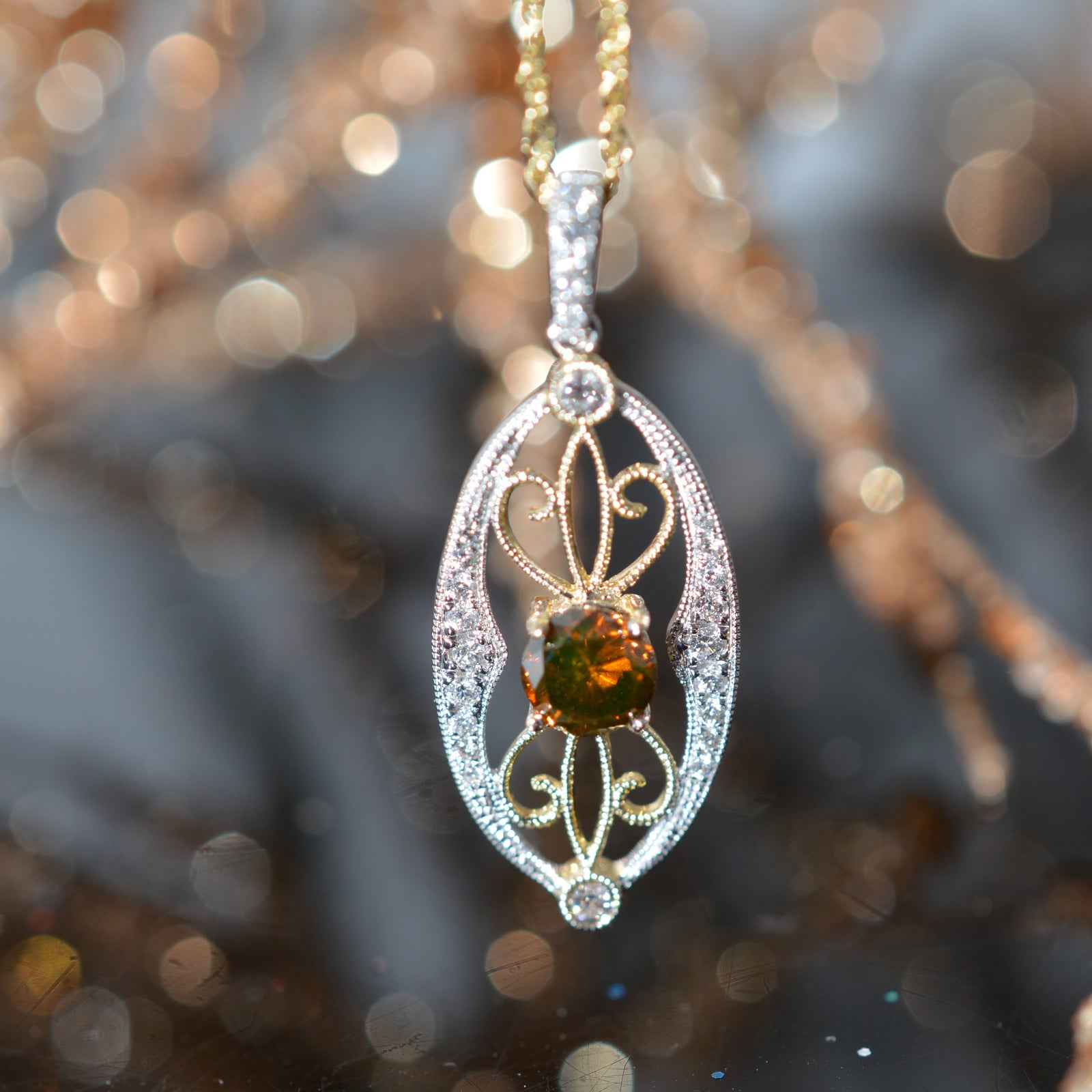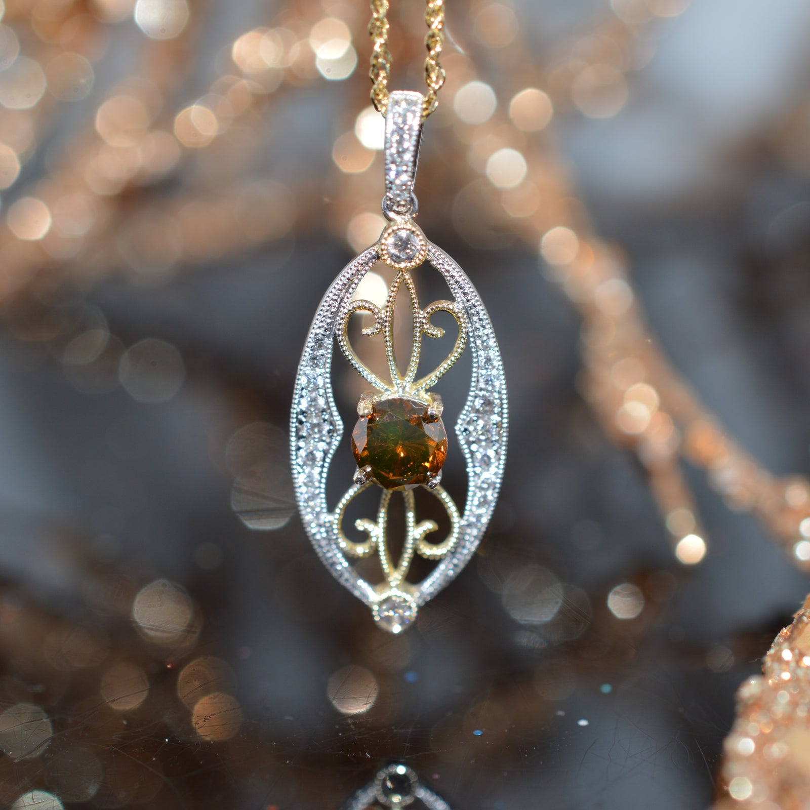 $1,800.00 USD14K Two Tone Gold and Diamond Filigree Pendant With 18 Inch Chain