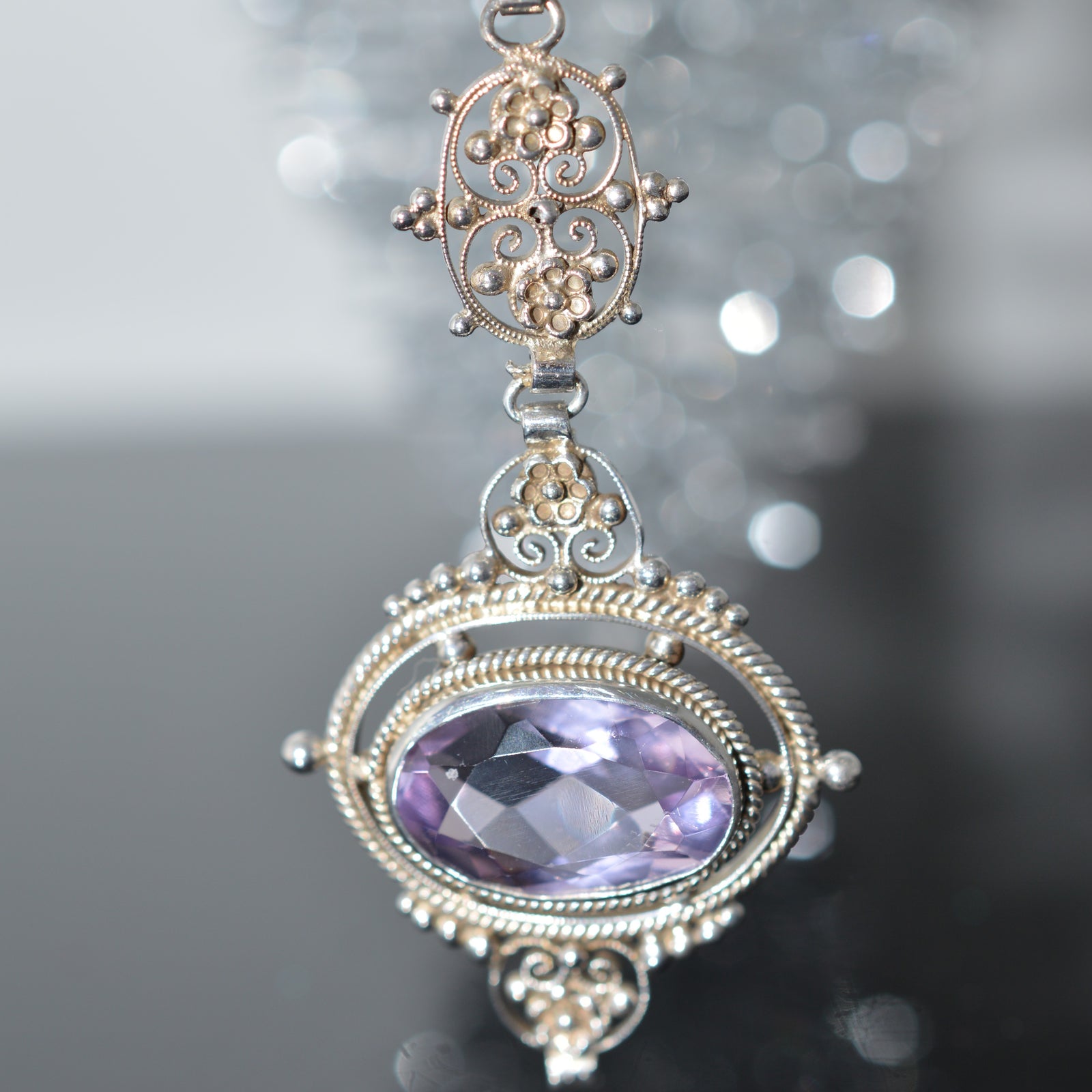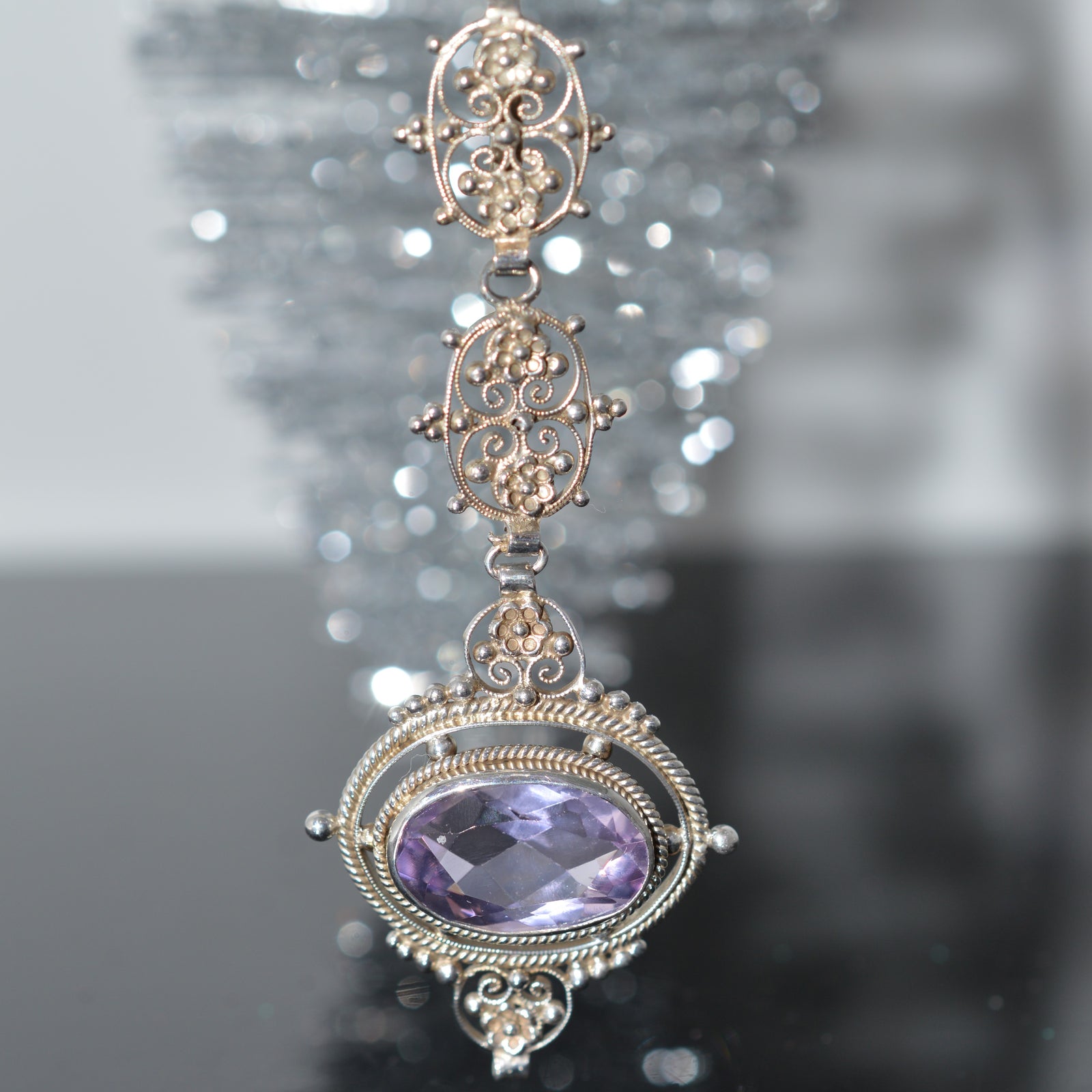 $2,700.00 USDSterling Silver Chain With 2.5 Inch Long Amethyst Pendant