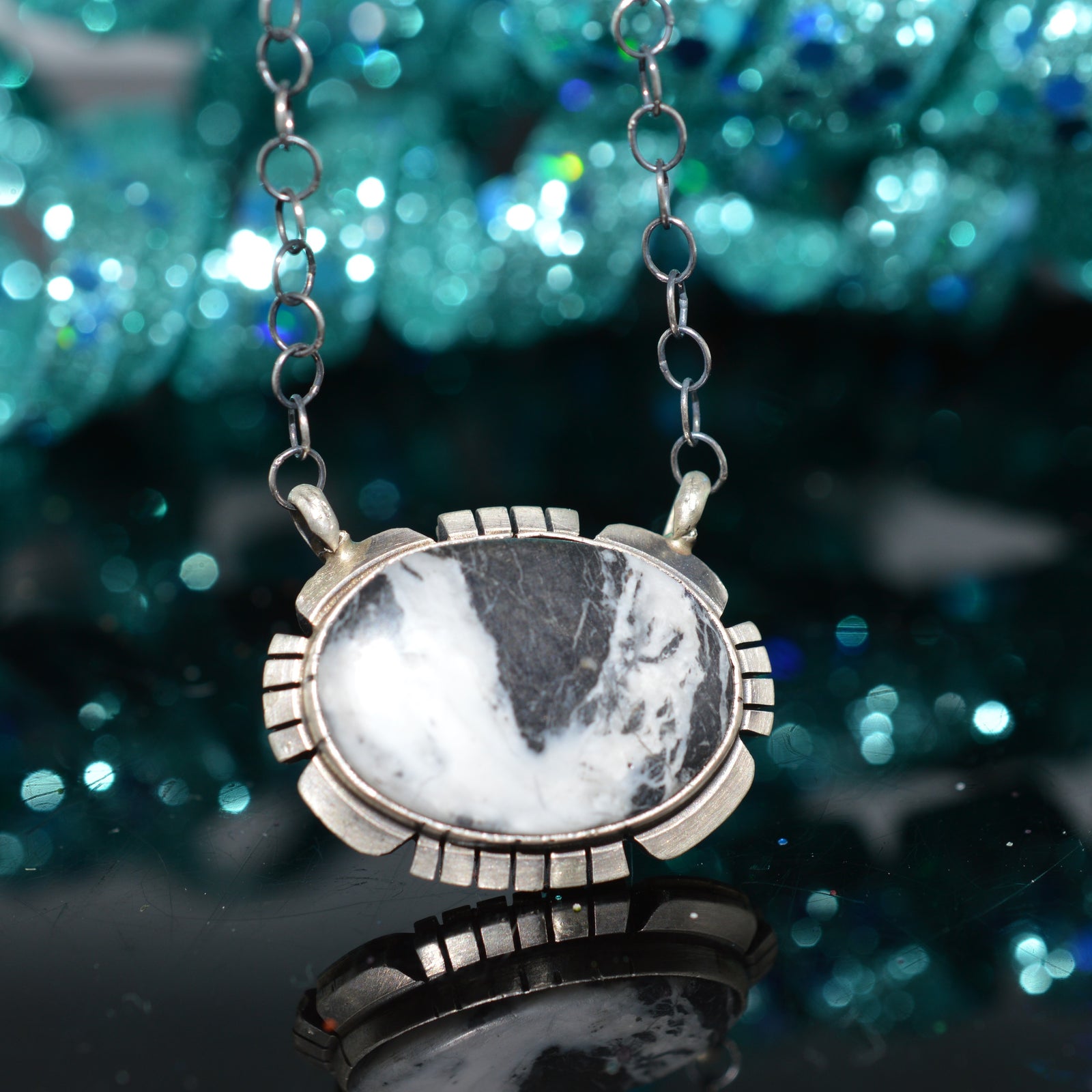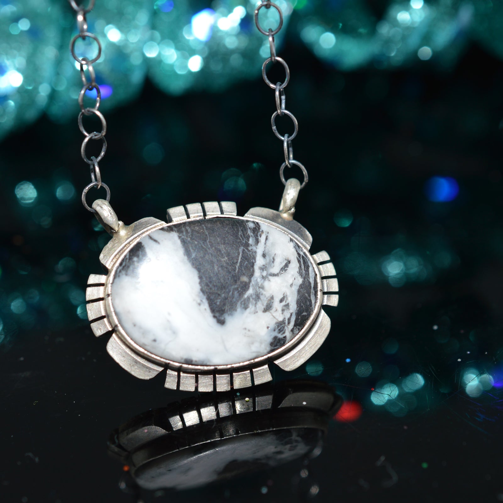 $125.00 USDSterling Silver White Buffalo Turquoise Necklace