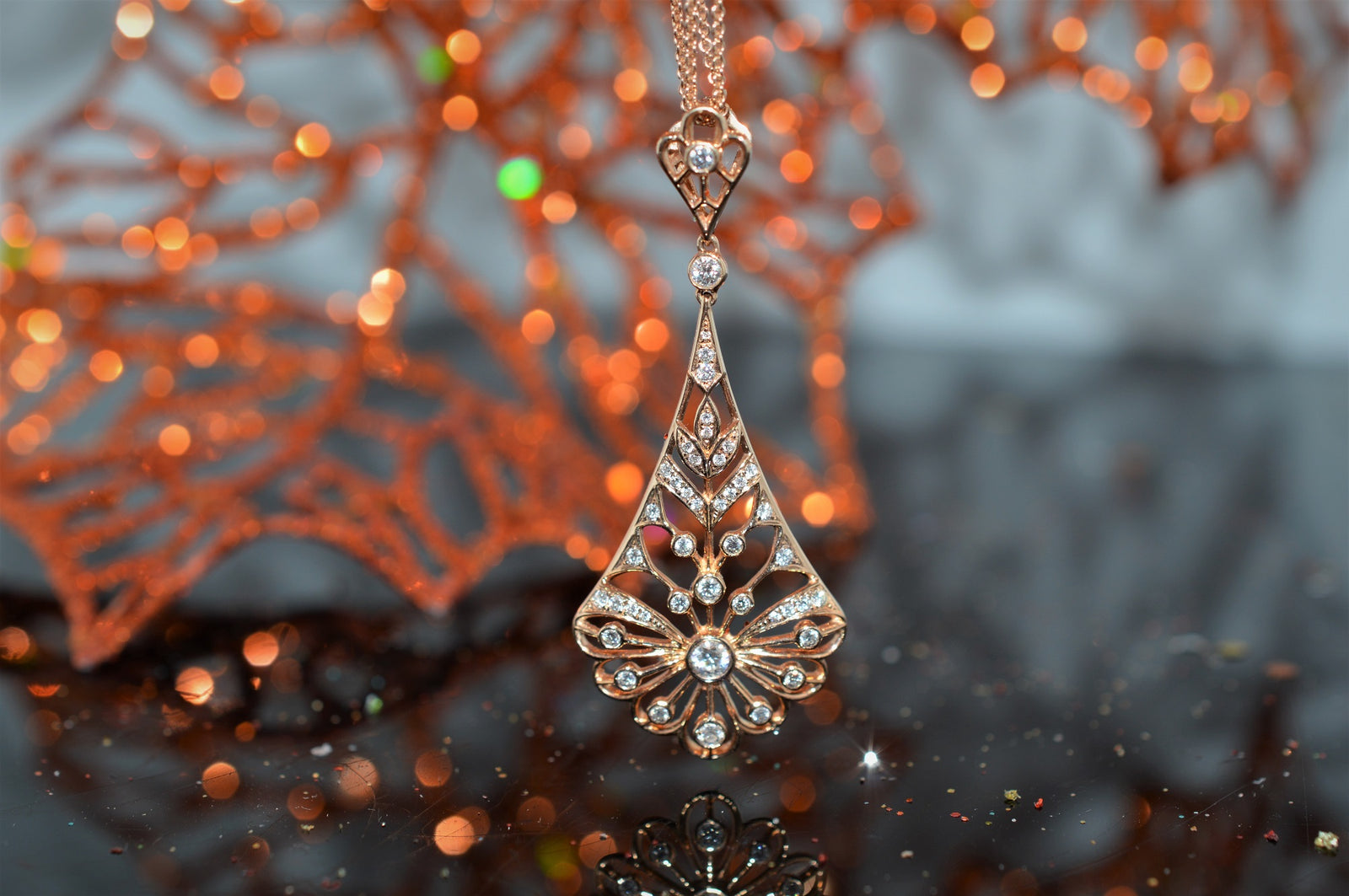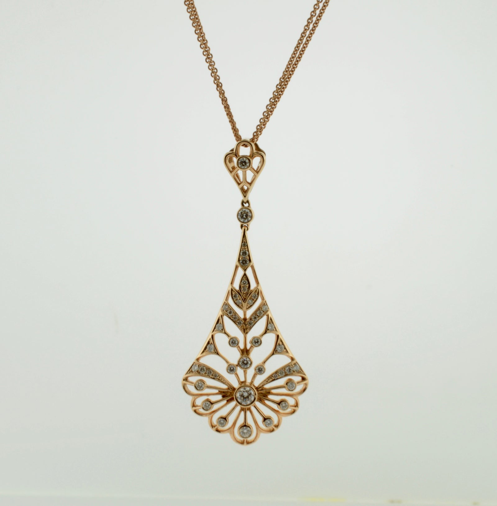 Sold Out14K Rose Gold Diamond Filigree Antique Style Necklace