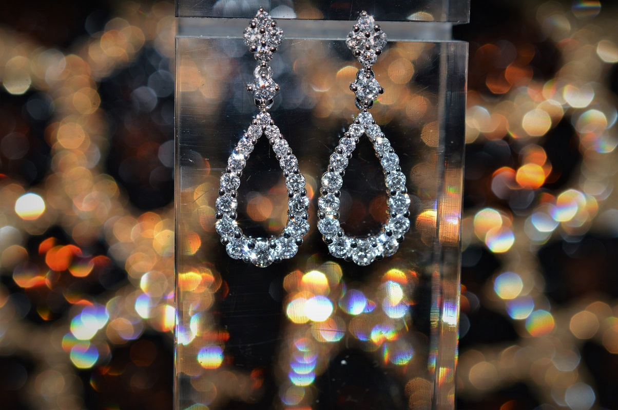 $9,795.00 USD18K White Gold Diamond Teardrop Shaped Dangle Earrings