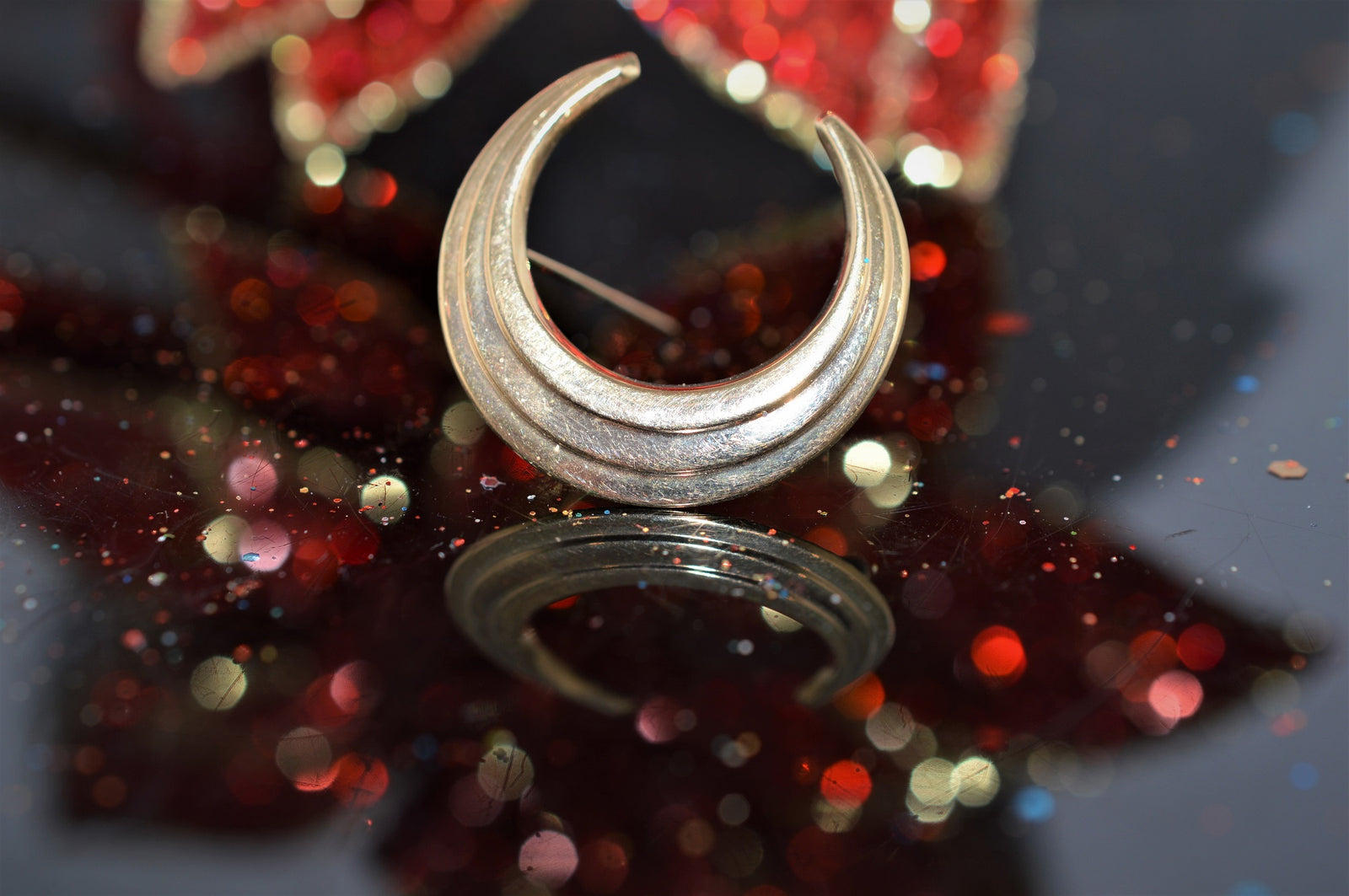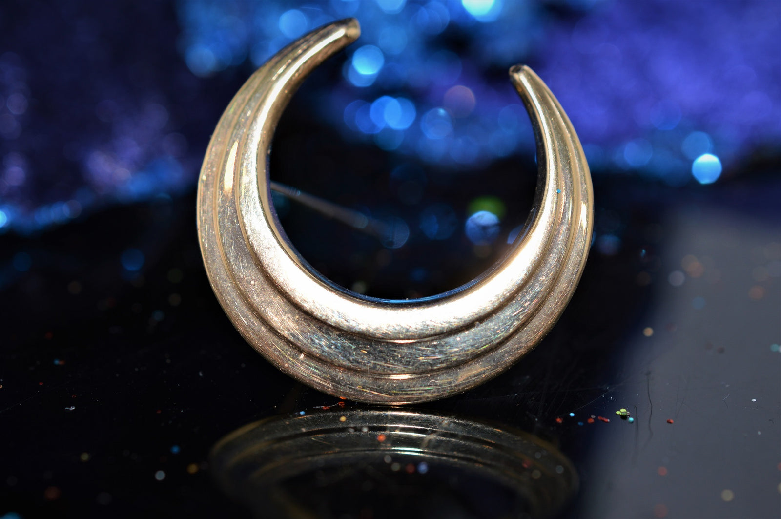 14K Yellow Gold Crescent Moon Brooch with 1.125" Diameter