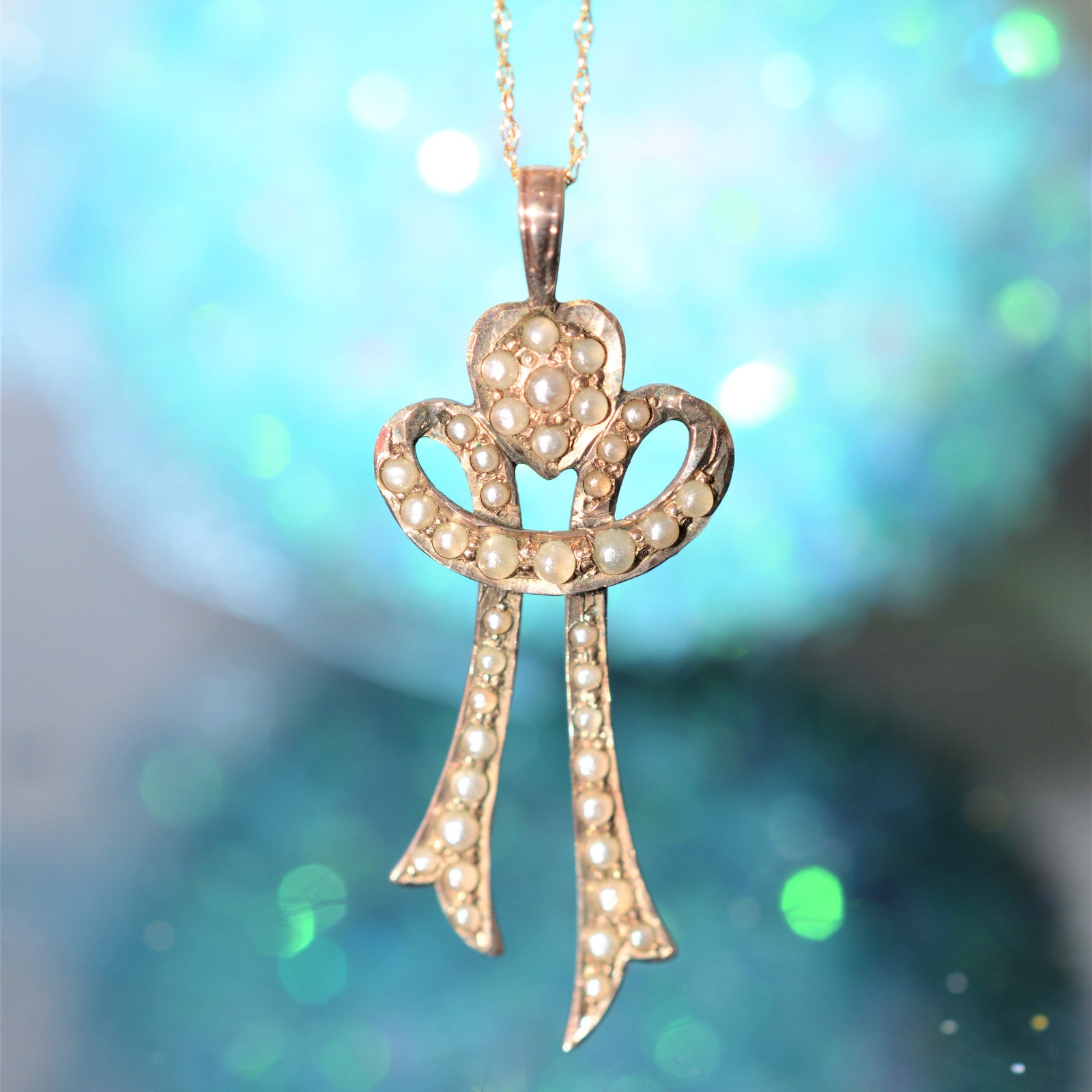 $325.00 USD10K Yellow Gold Ribbon Shape Pearl Pendant Necklace