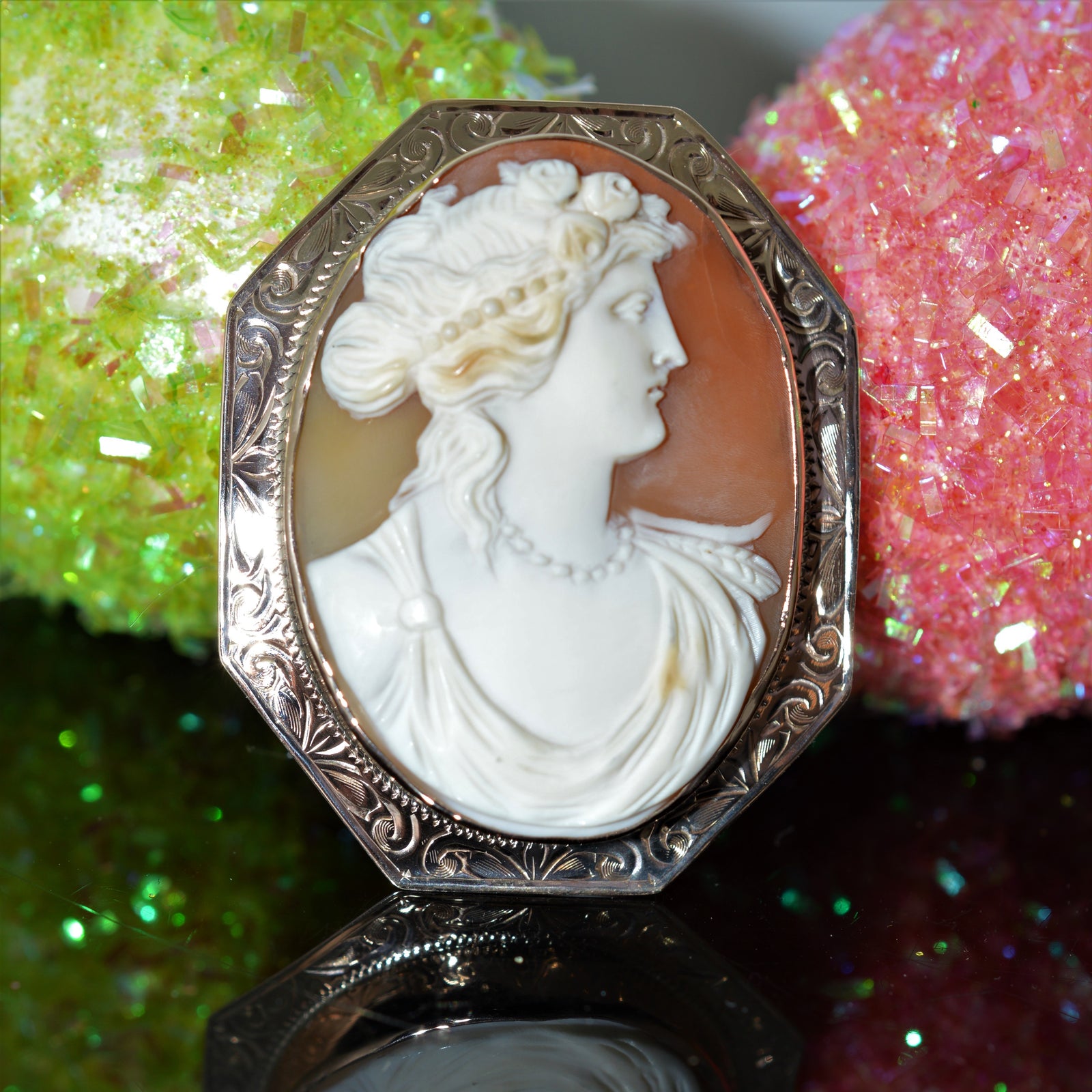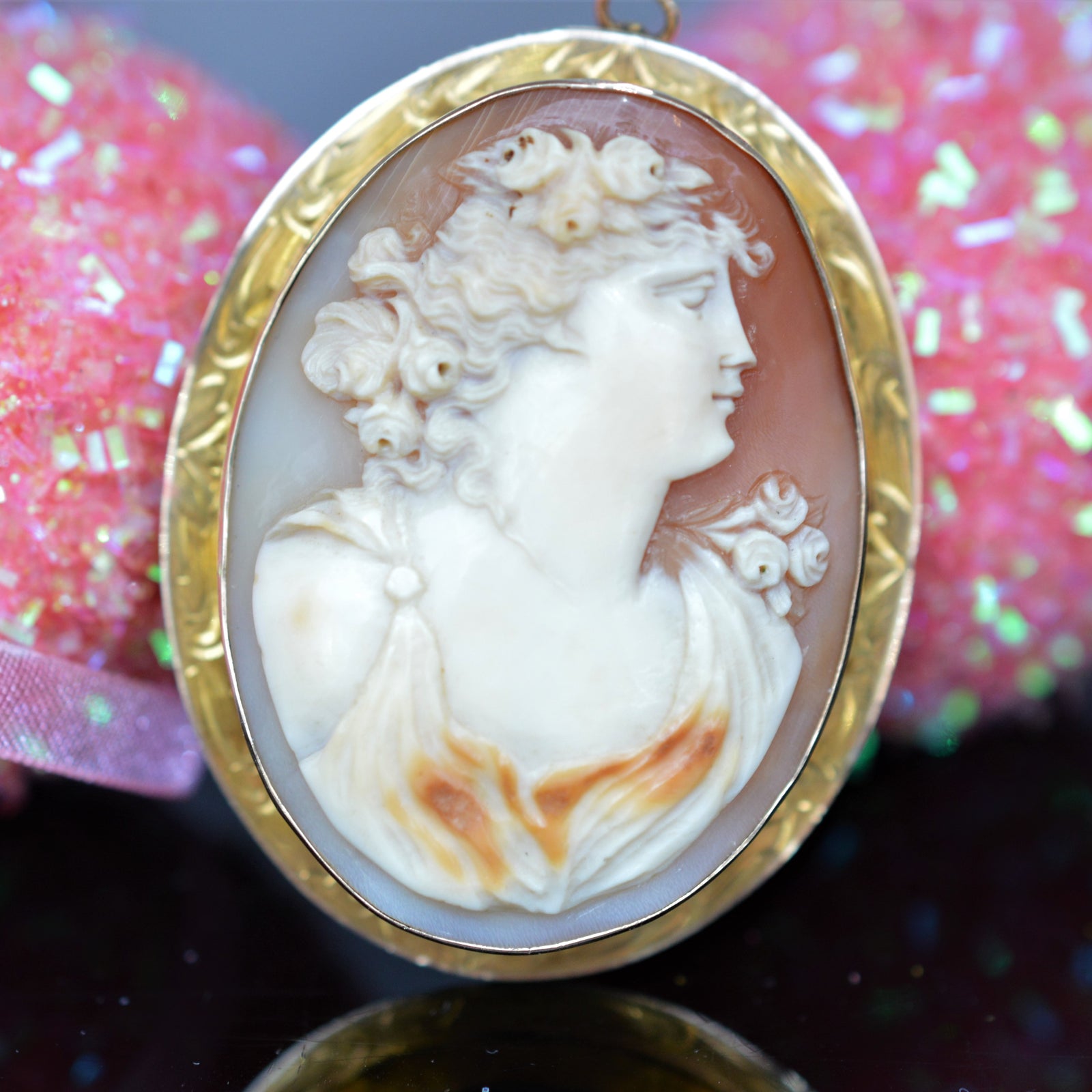 $1,650.00 USD14K Yellow Gold 38x28mm Oval Shell Cameo Pin/Pendant