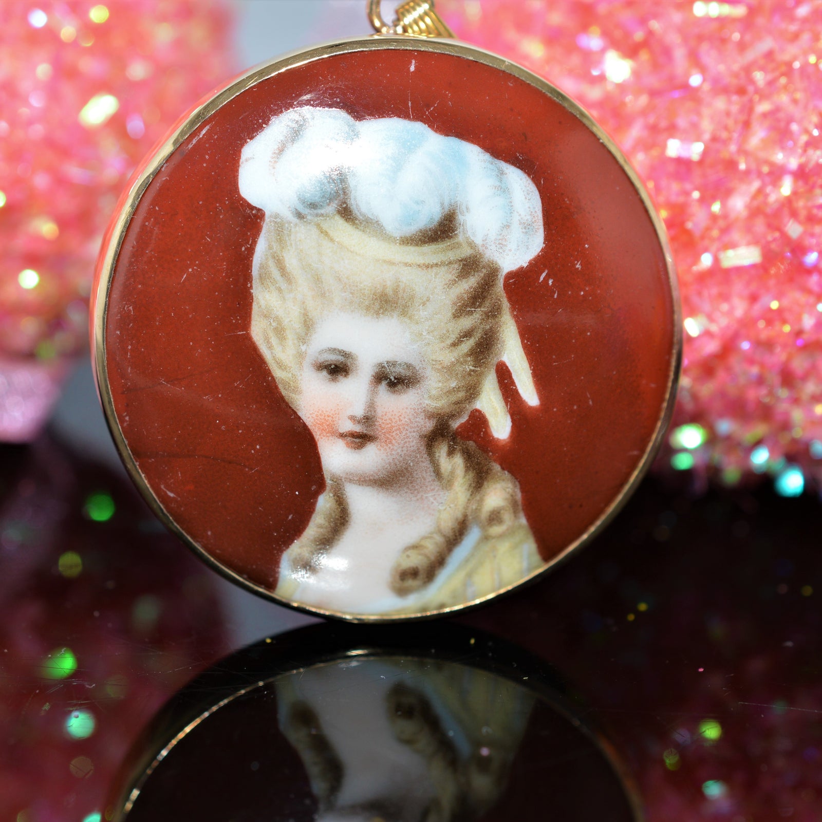 $595.00 USD14K Yellow Gold Framed Hand Painted Porcelain Pin/Pendant