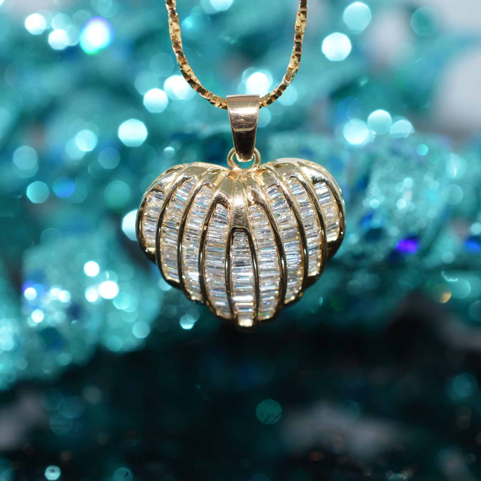 $1,695.00 USD14K Gold 2.50 Carat Total Weight Baguette Diamond Heart Pendant With Chain