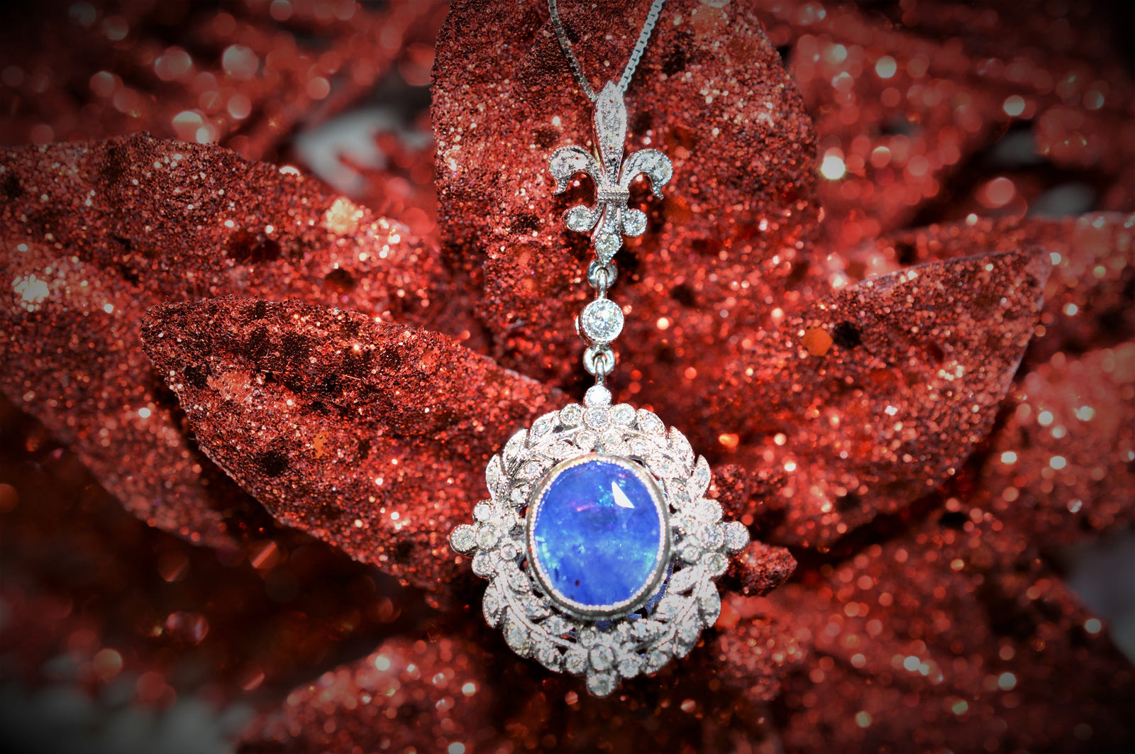 $7,500.00 USD18K White Gold Oval Tanzanite And Round Diamond Pendant