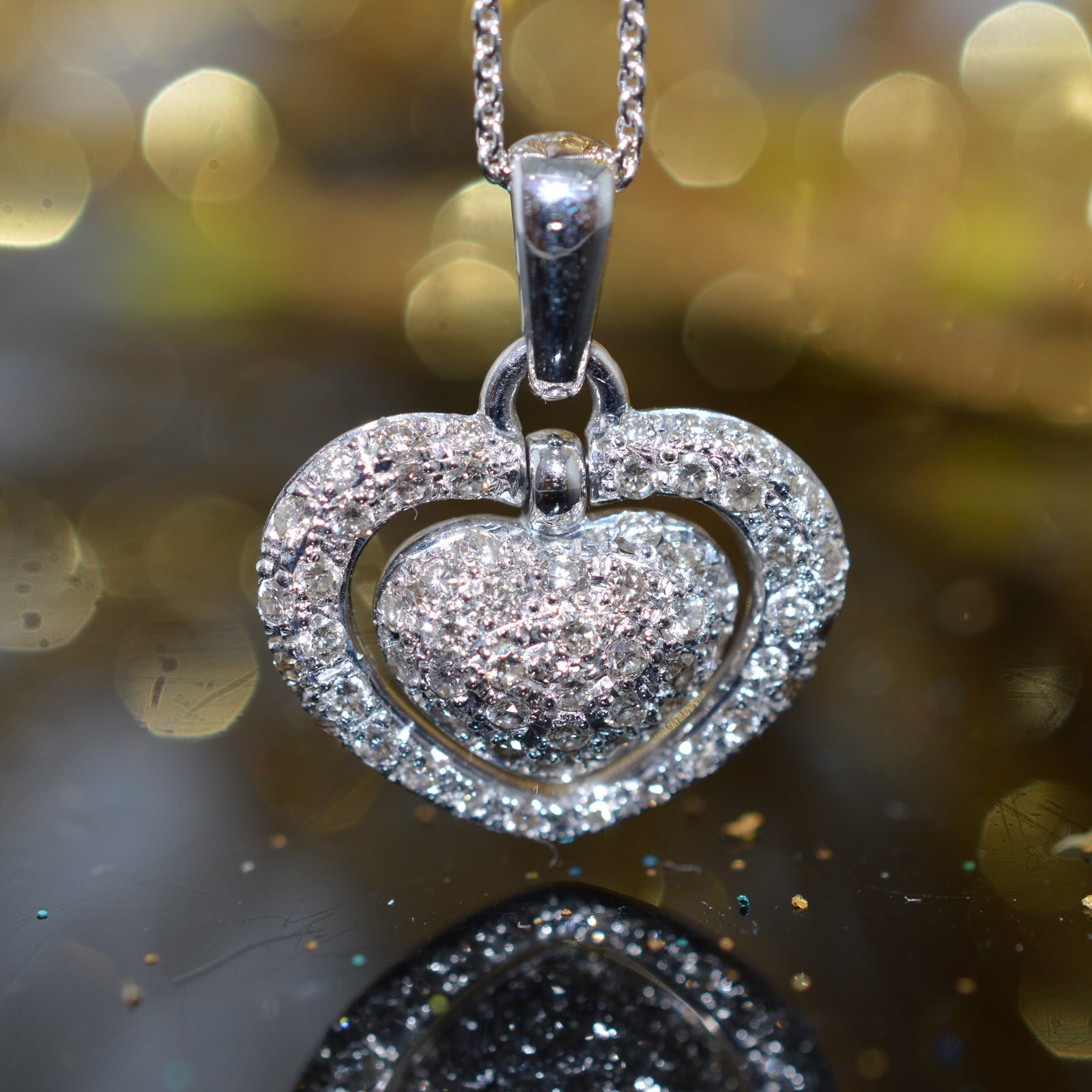 $1,900.00 USD18K White Gold 1.00 Carat Total Weight Diamond Double Heart Pendant With Chain