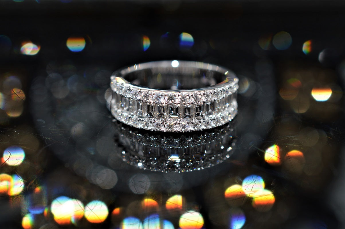 $5,500.00 USD18K White Gold Round and Baguette Shaped Diamond Band