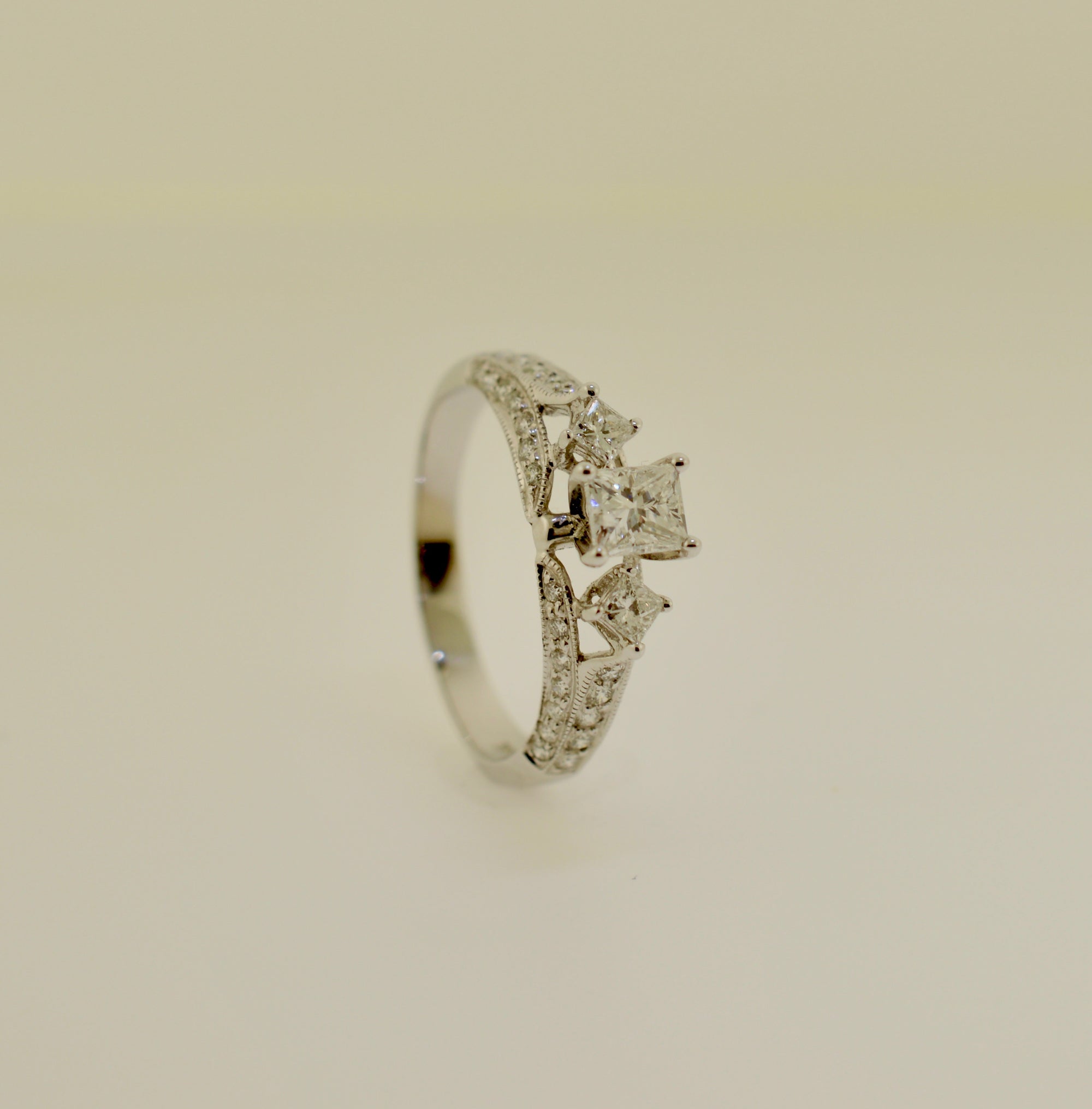 $4,600.00 USD14K Three Stone Princess Cut Diamond Engagement Ring