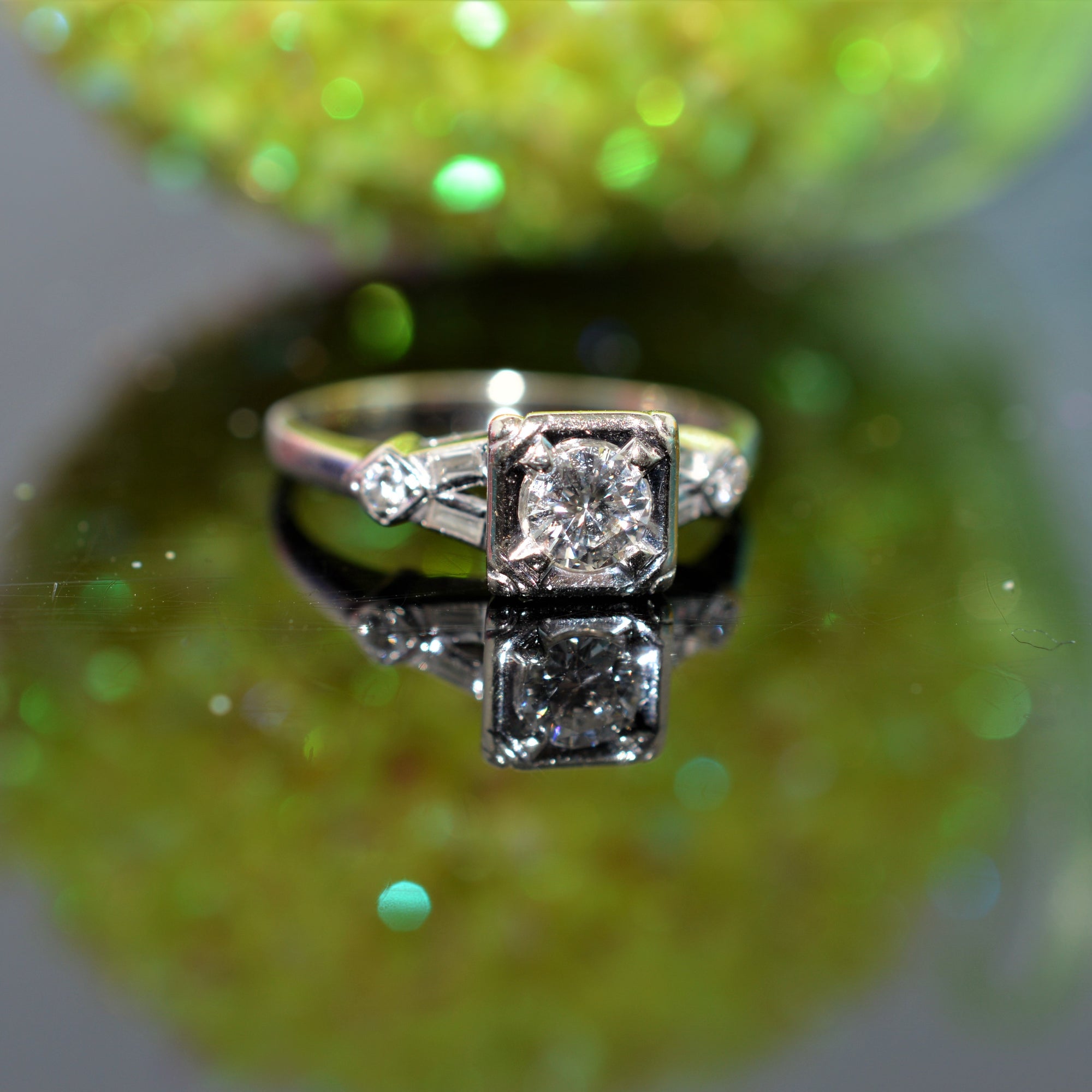 $2,600.00 USD14K White Gold Brilliant and Baguette Cut Diamond Engagement Ring