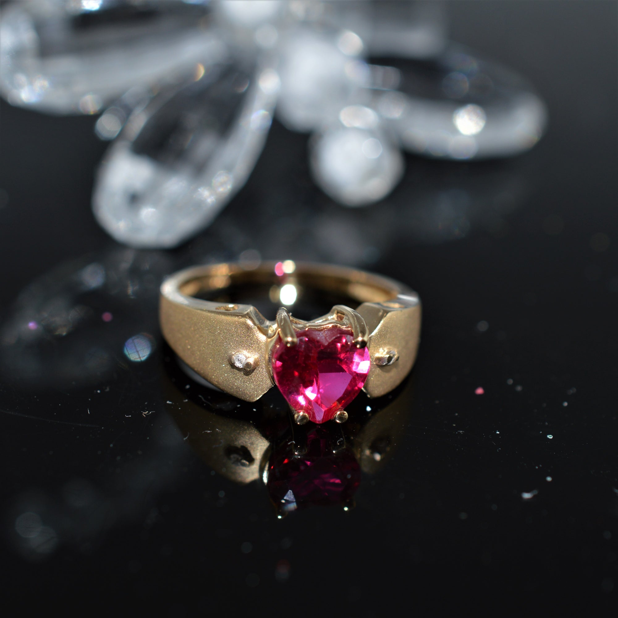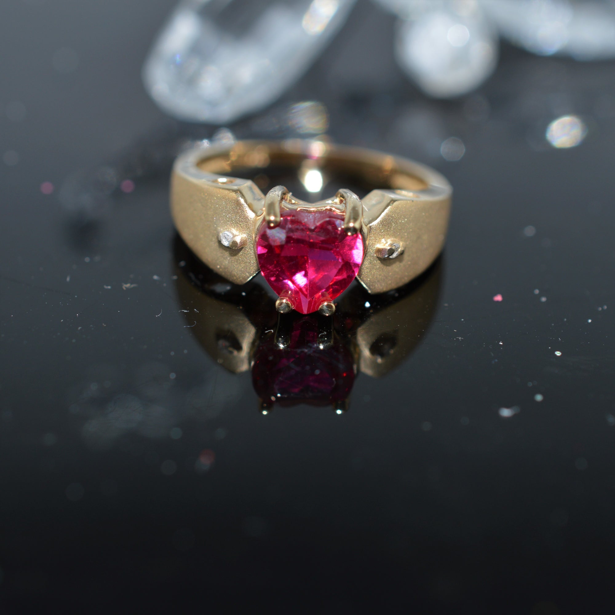 $2,295.00 USD14K Yellow Gold Created Heart Cut Ruby And Diamond Ring