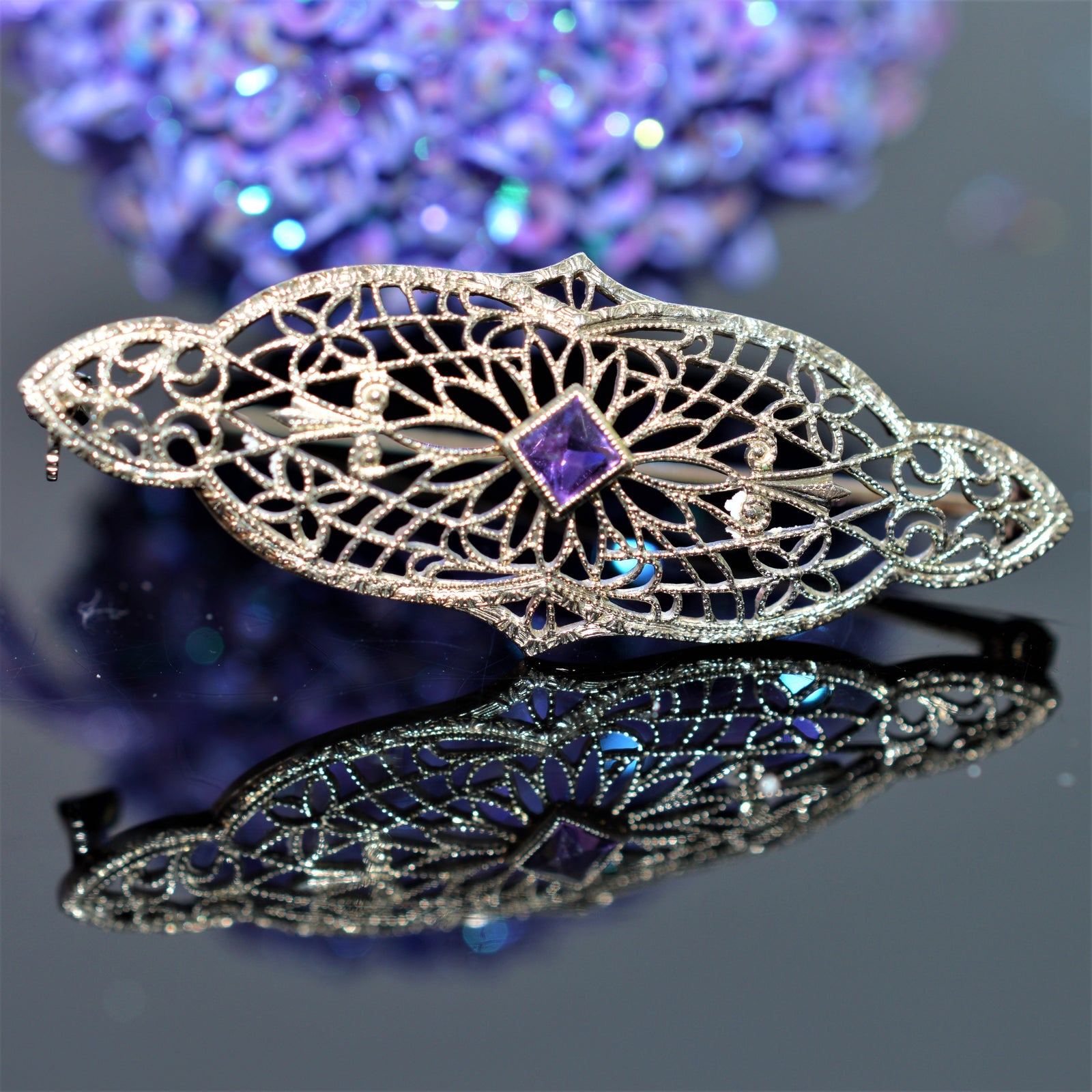 $795.00 USD14K White Gold Antique Art Deco Filigree Brooch