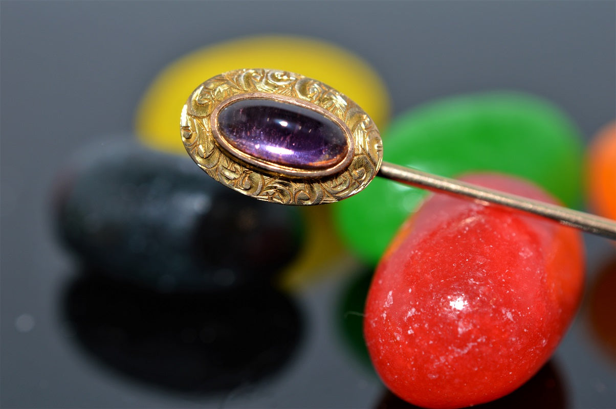 $59.95 USD14 Karat Yellow Gold Oval Cabochon Amethyst Stickpin