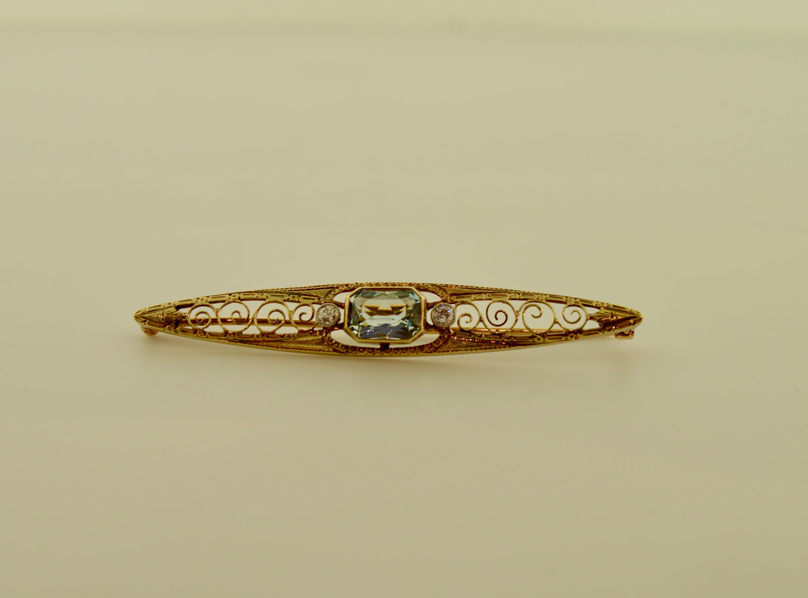 $59.95 USD14K Two Tone Vintage Aquamarine and Diamond Brooch