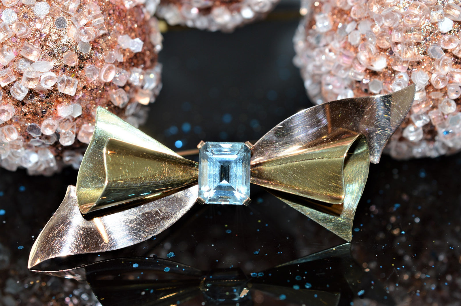 $495.00 USD14K Yellow And Rose Gold Retro Aquamarine Cartier Brooch