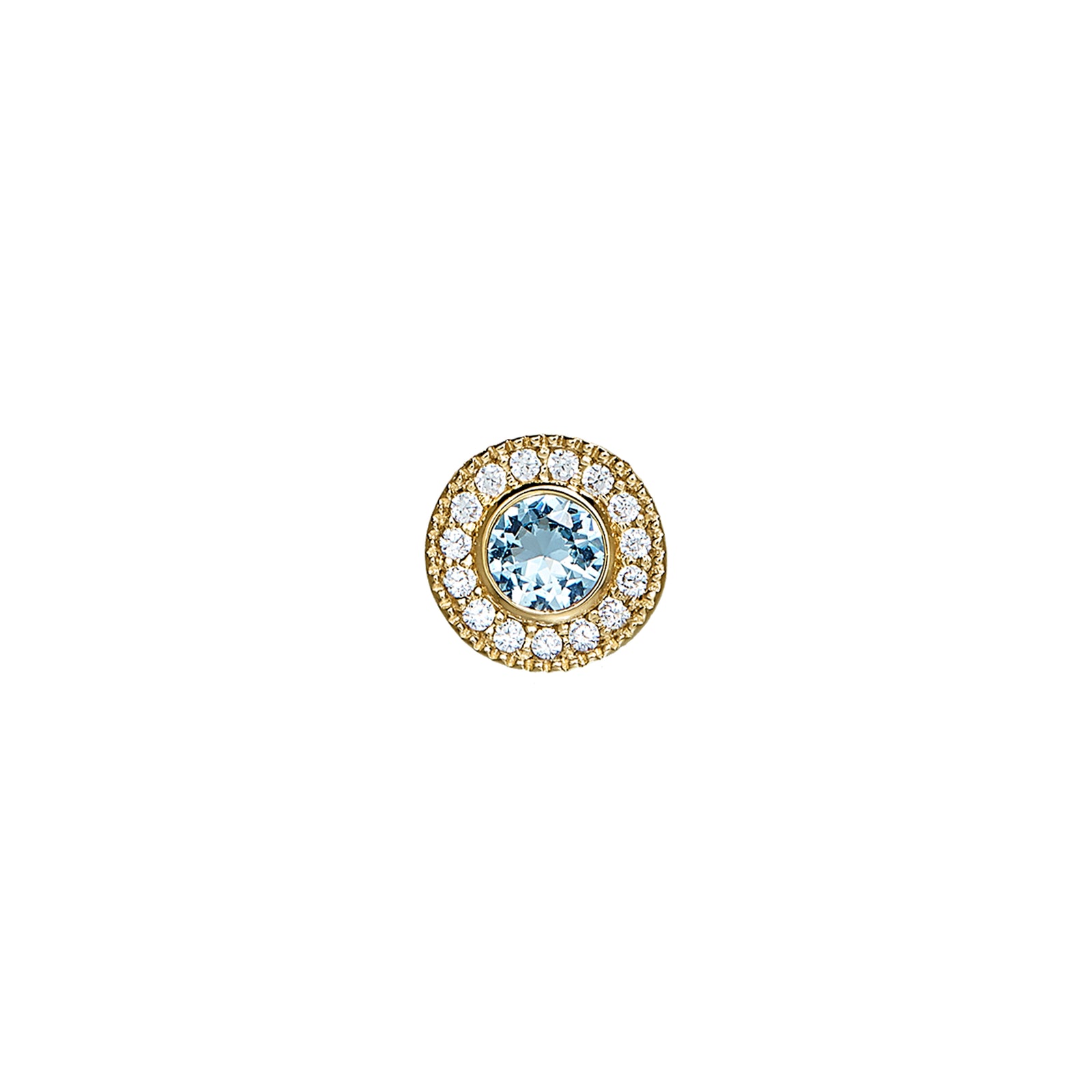 $825.00 USDPlatinum Finished Blue Topaz Birthstone Bezel with Halo