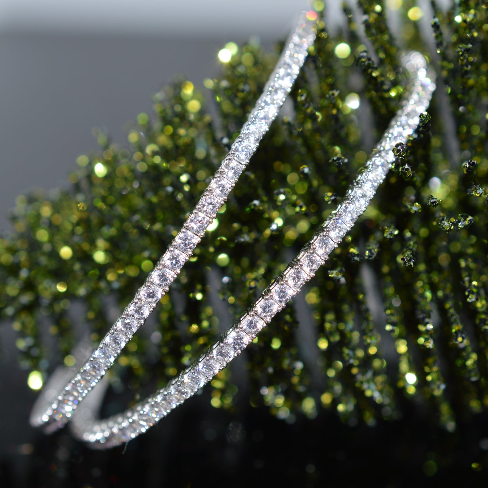 $2,995.00 USDPlatinum Finish Sterling Silver Double Wrap Bracelet With Simulated Diamonds
