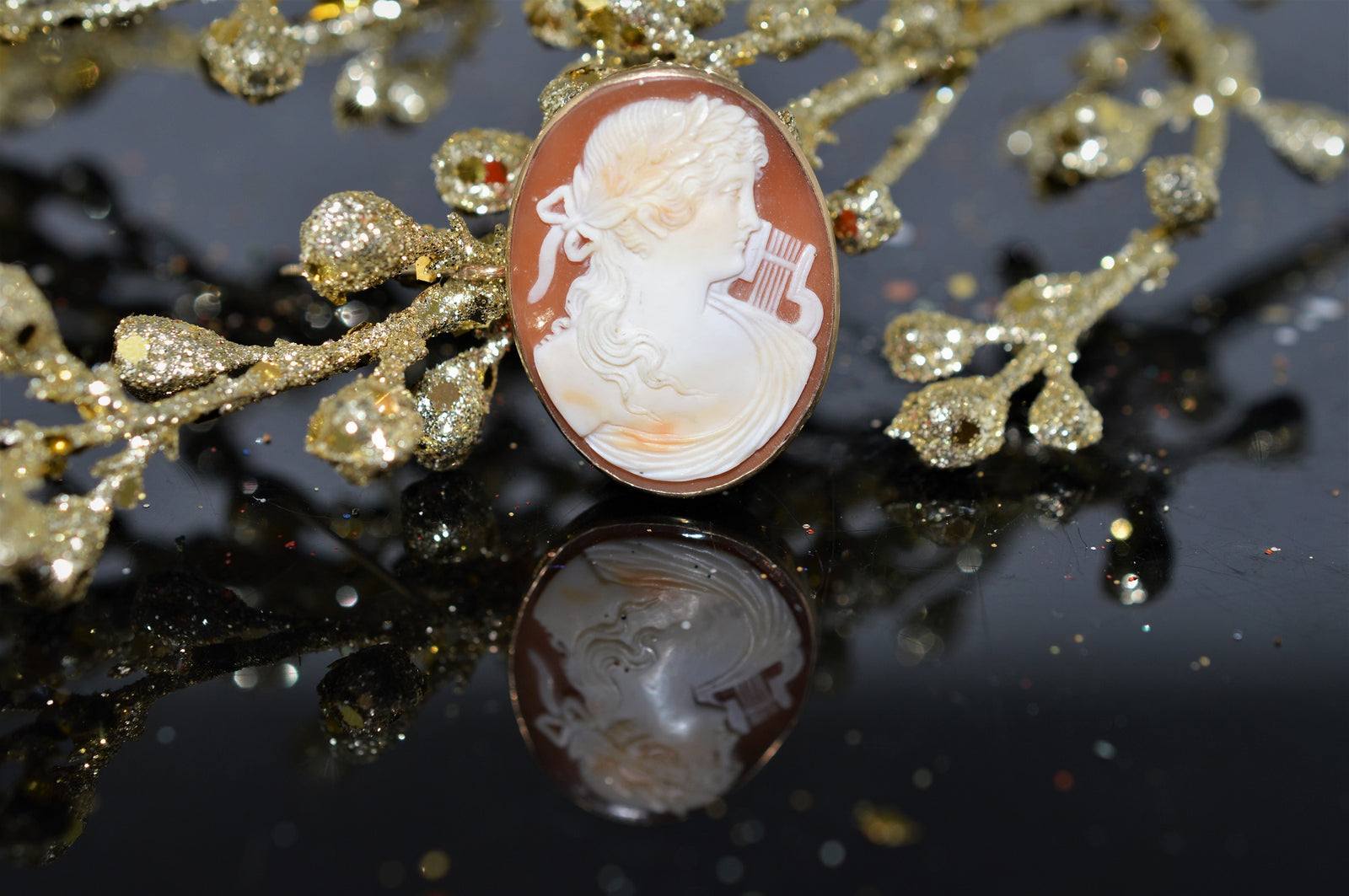 $2,350.00 USD18K Yellow Gold Victorian Etrusan Revival Cameo Brooch