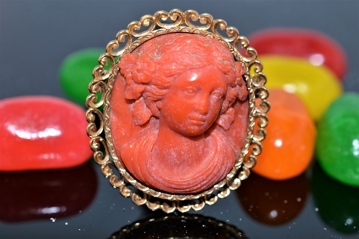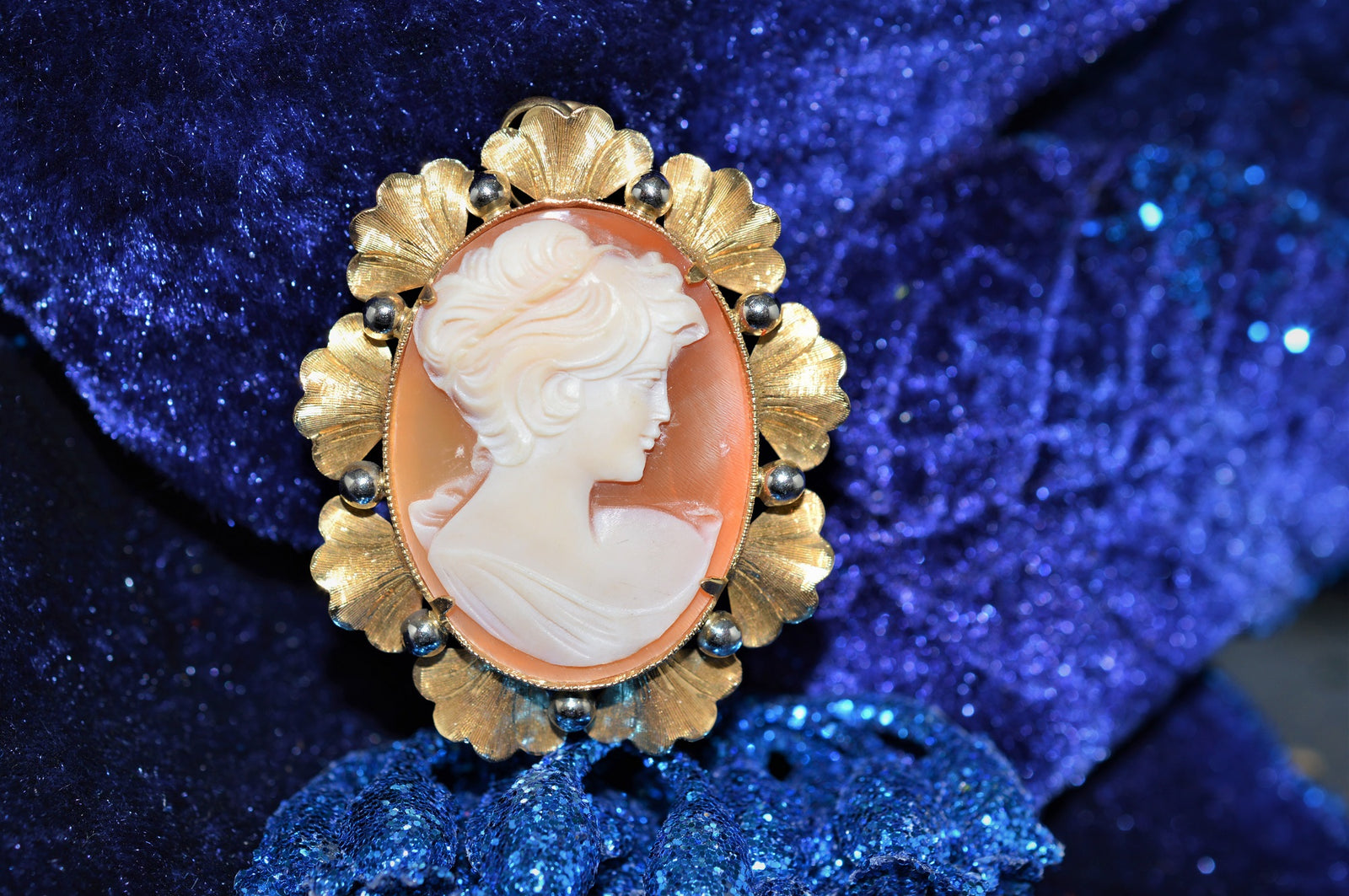 10K Yellow Gold 22 x 30mm Cameo Brooch and Pendant