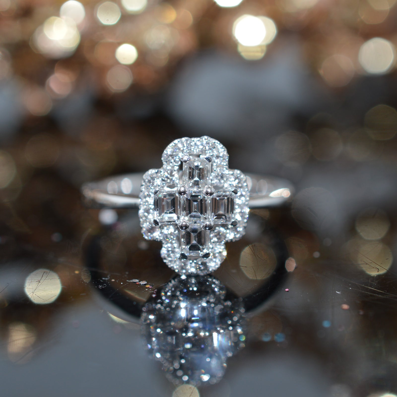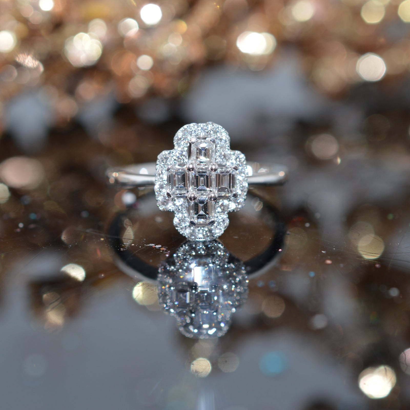 $1,850.00 USD18K White Gold Diamond Ring With Round And Emerald Cut Diamonds