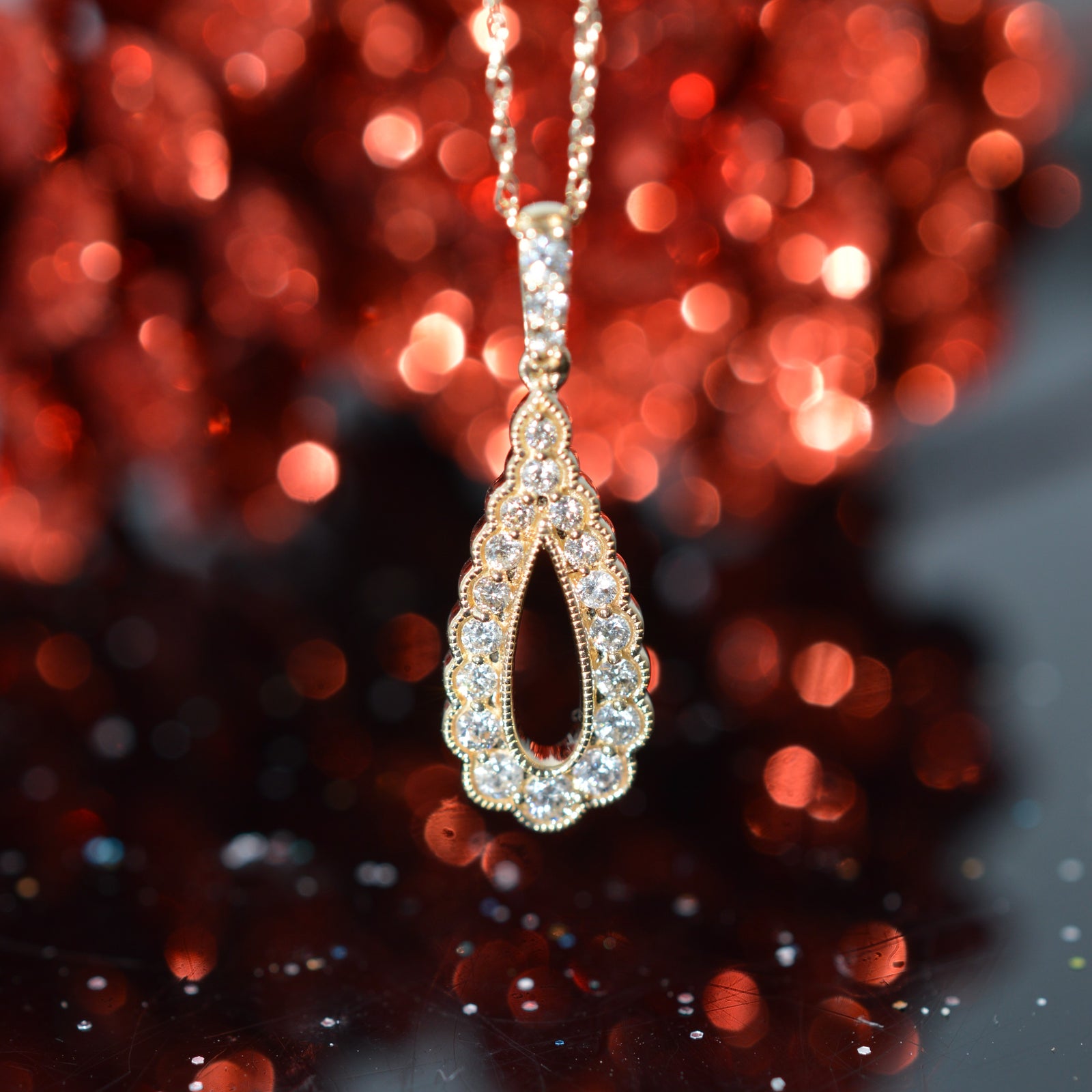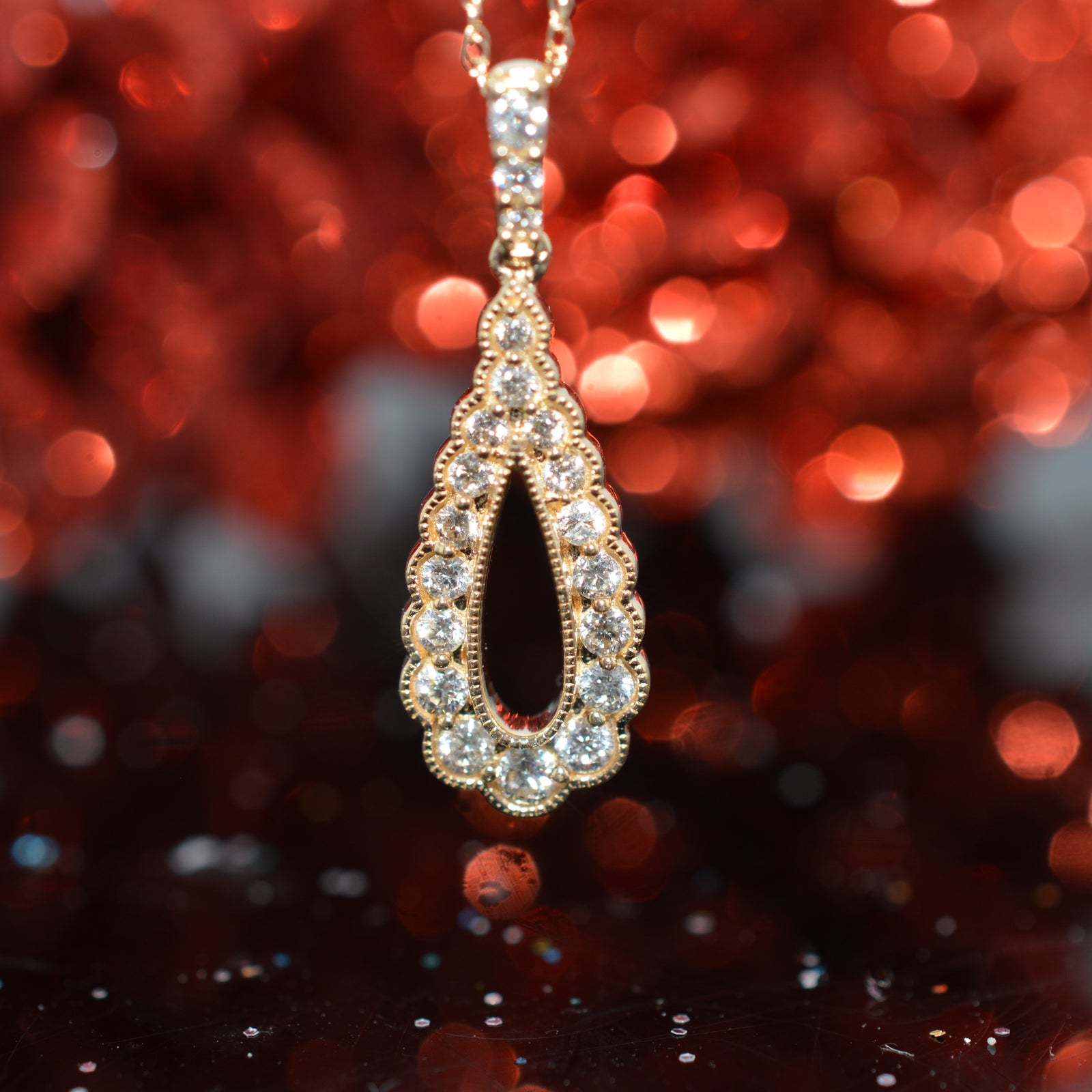 $1,900.00 USD14K Yellow Gold Diamond Teardrop Shape Pendant With Chain
