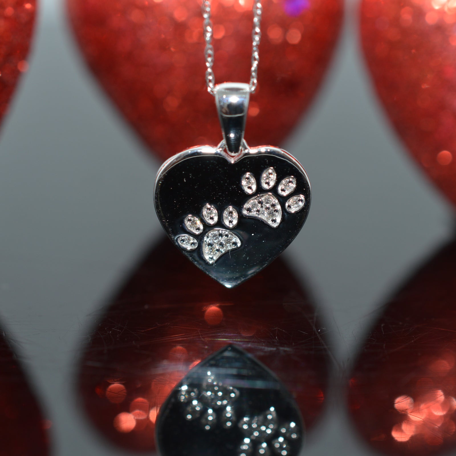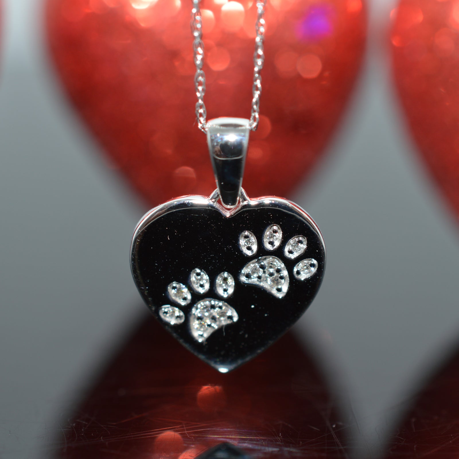 $5,250.00 USD14K White Gold Diamond Paw Print Heart Pendant On 18" Chain