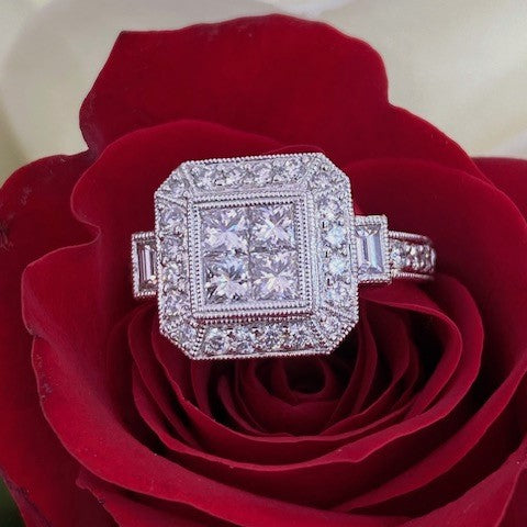 $1,299.00 USDPlatinum Fashion Ring With Invisibly Set Princess Cut Diamonds