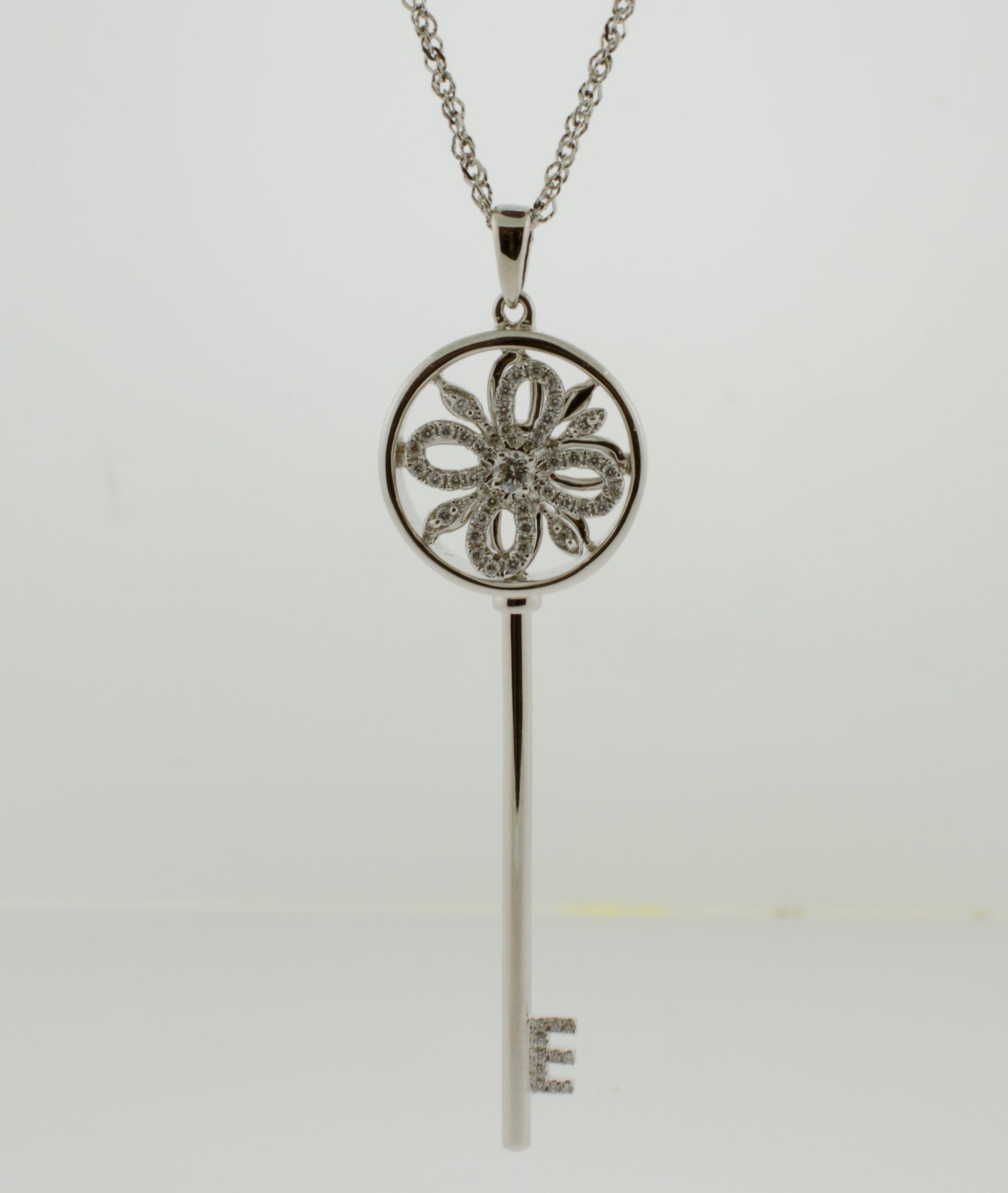 $1,600.00 USD18K White Gold Diamond Spinner Key Necklace on a 14K Chain