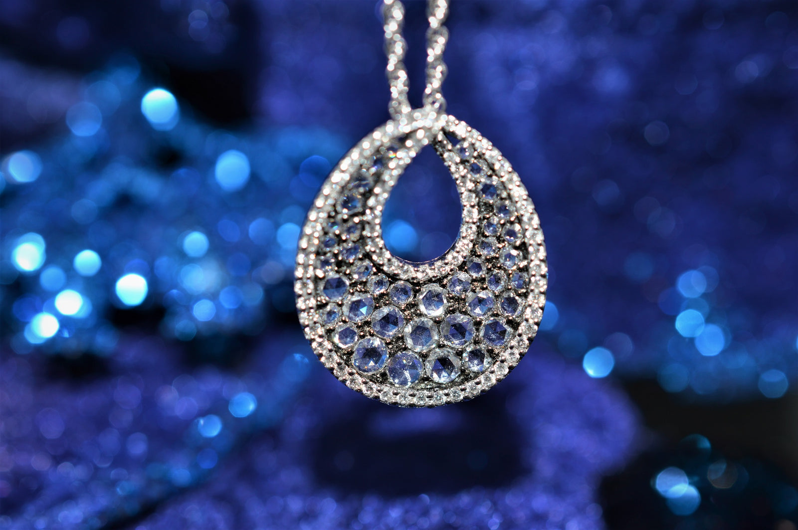 $4,395.00 USD14K White Gold Rose Cut Diamond Pendant With 18 Inch Chain