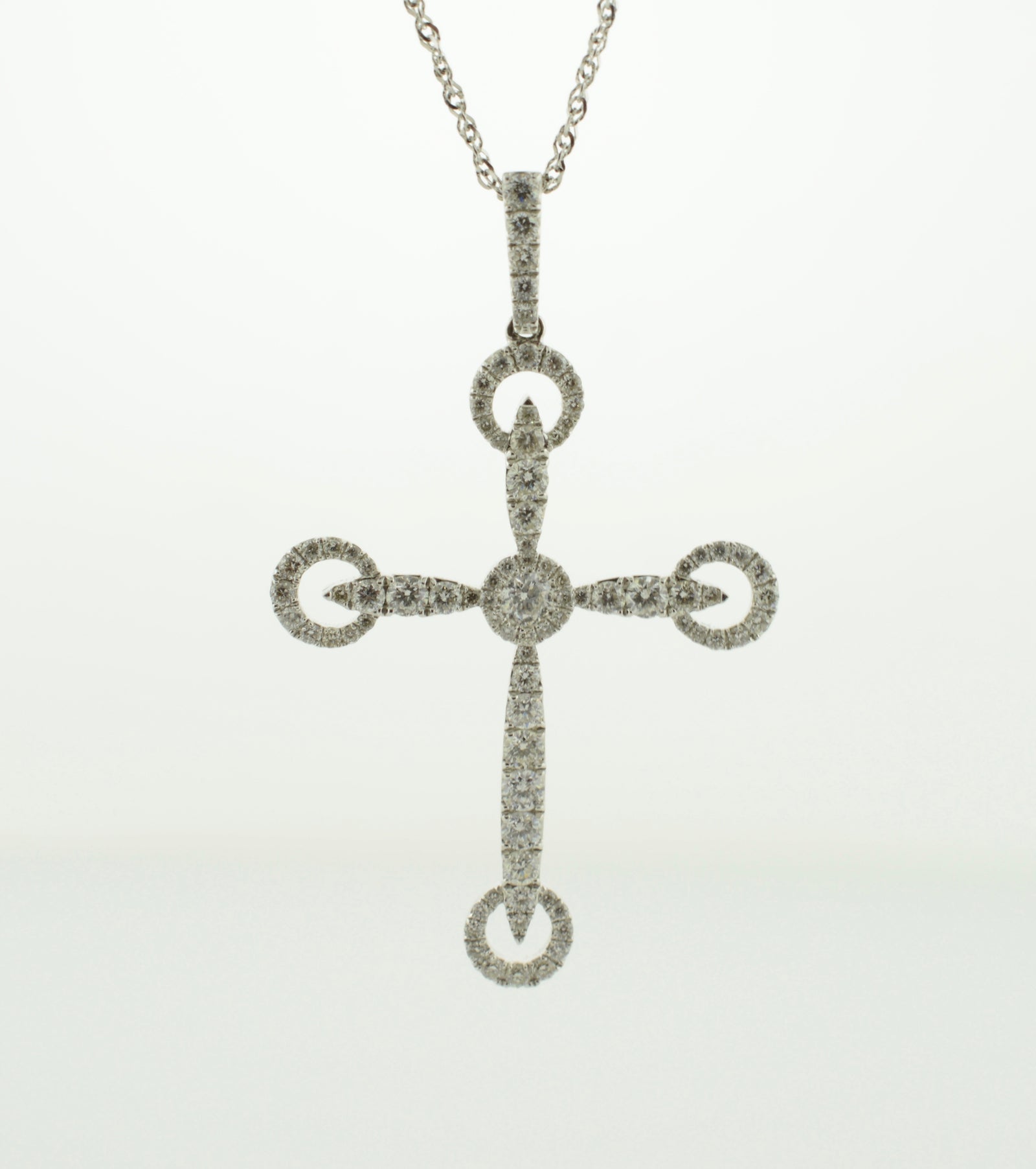 $8,850.00 USD14K White Gold Diamond and Cross Necklace on and 18" Chain