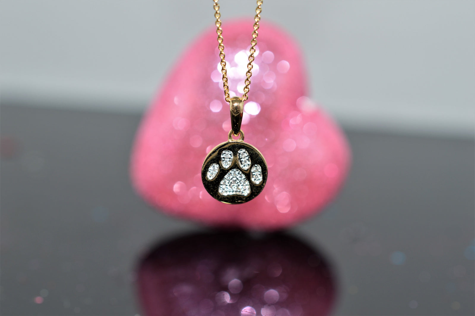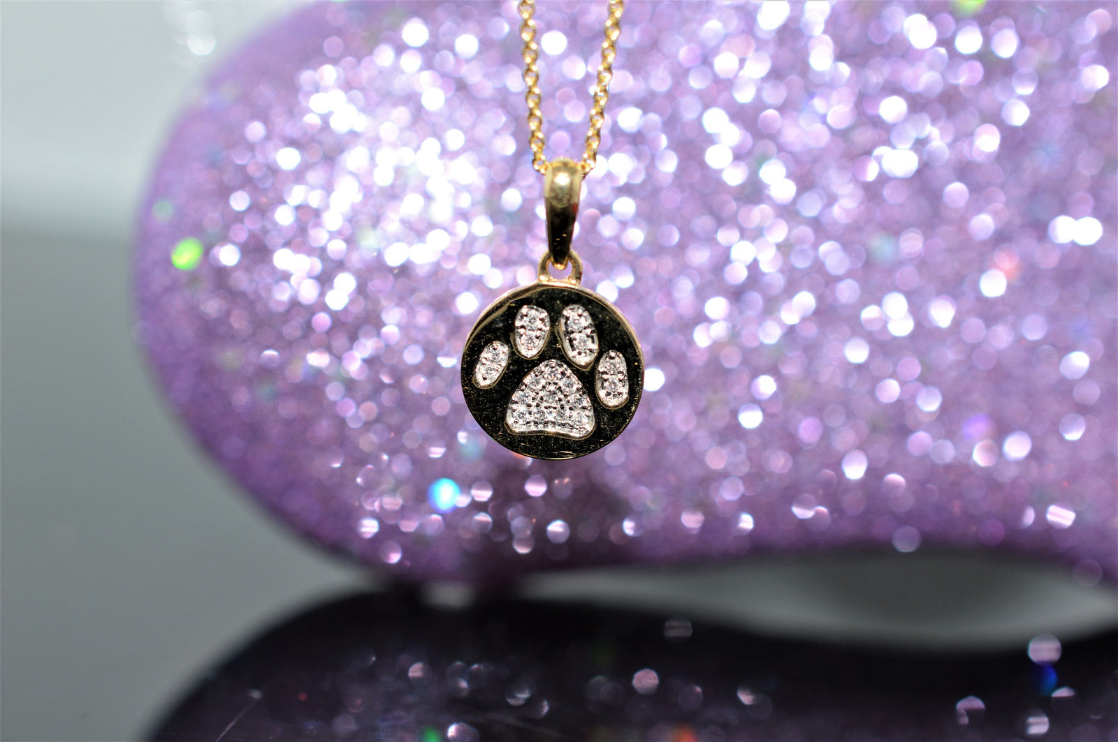 $4,400.00 USD14K Yellow Gold Diamond Paw Print Pendant on an 18" Chain