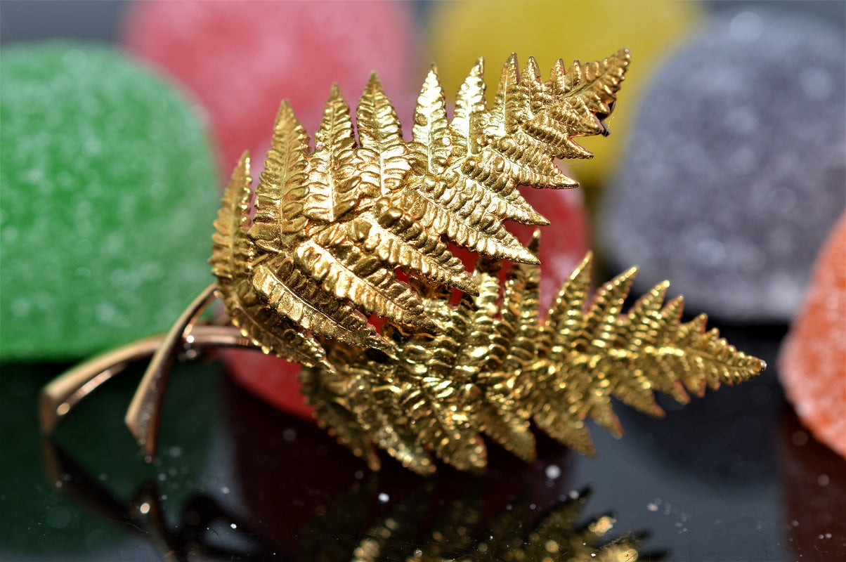 $775.00 USD14K Yellow Gold And Green Gold Two Fern Leaf Brooch