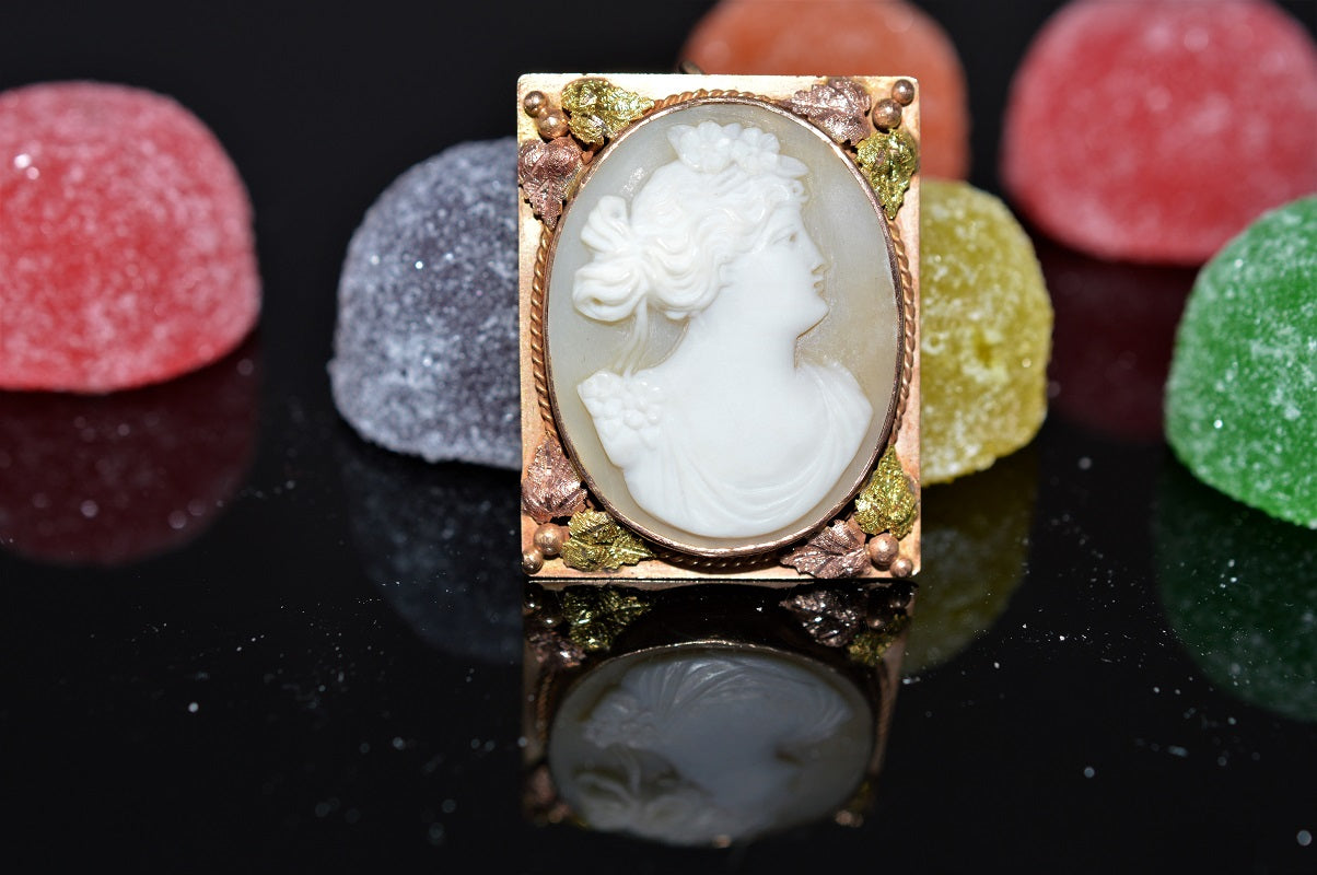 $75.00 USD14K Yellow And Green Gold Antique Shell Cameo Pin/Pendant