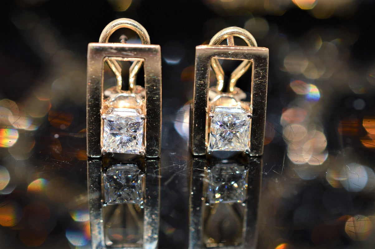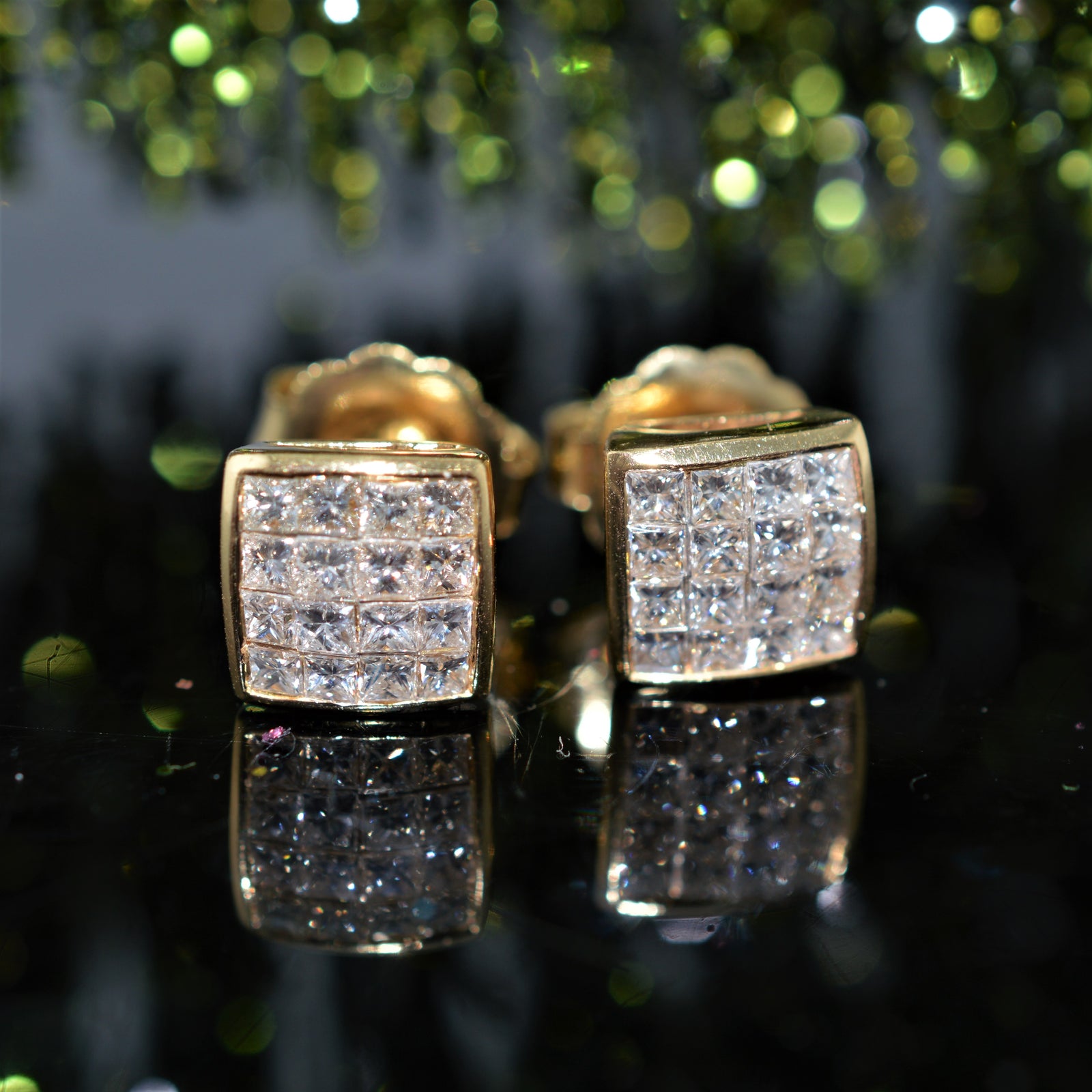 18K Yellow Gold 2 Carat Total Weight Invisibly Set Diamond Earrings