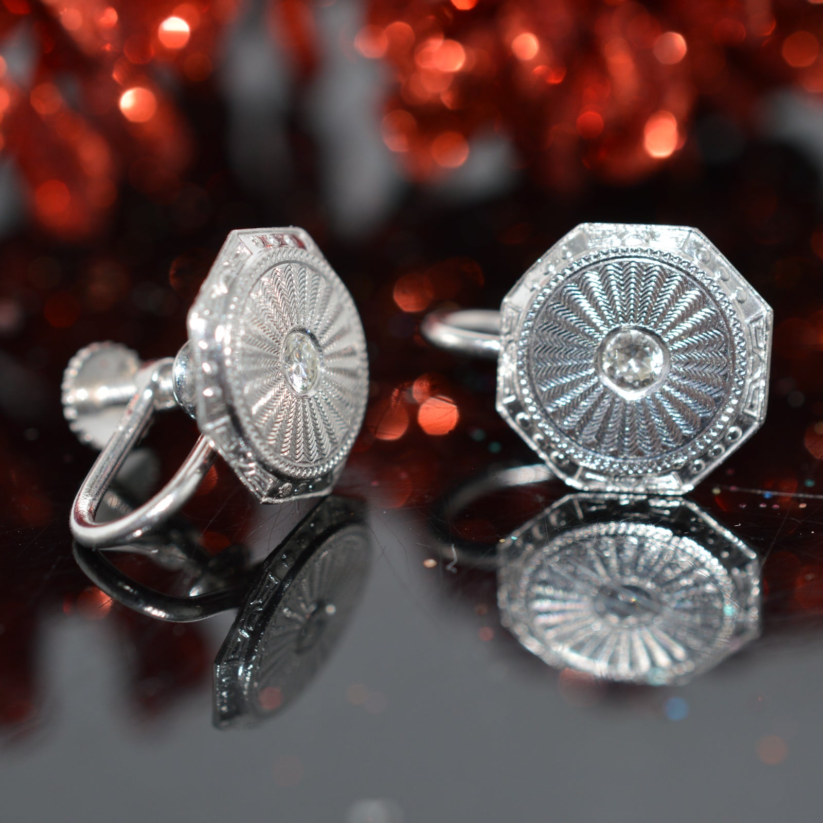 Platinum & 14K White Gold Antique Nonpierced Diamond Earrings