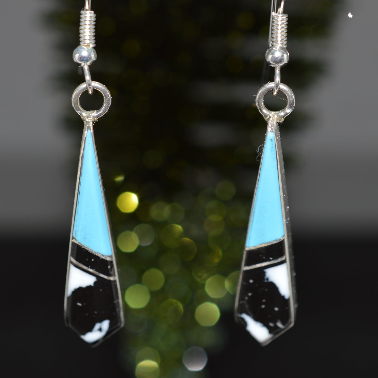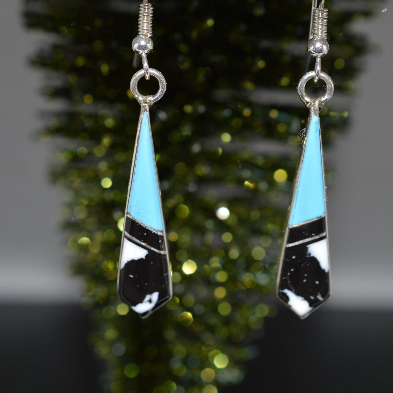 Sterling Silver Black Onyx, Turquoise, And White Buffalo Turquoise Earrings