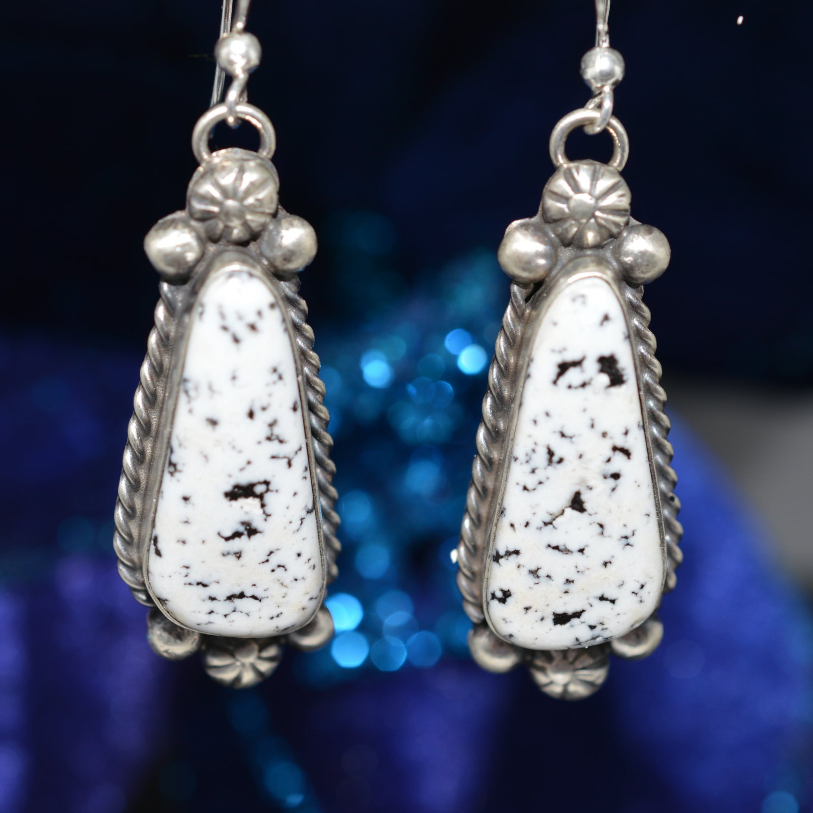 Sterling Silver White Buffalo Turquoise Dangle Earrings