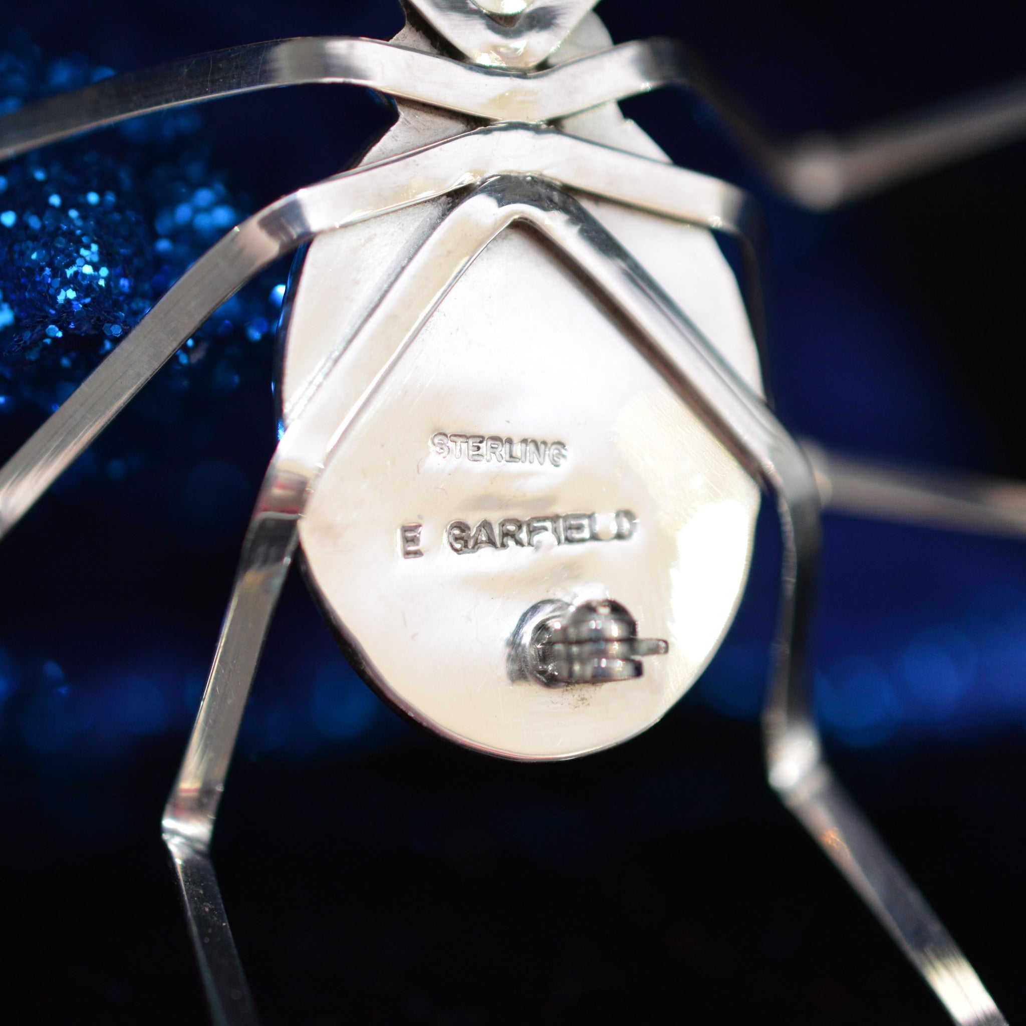 A Ladies Stunning Sterling Silver 4 Inch Diameter Turquoise Handmade Spider Brooch Signed By Native American Artist E. Garfield.