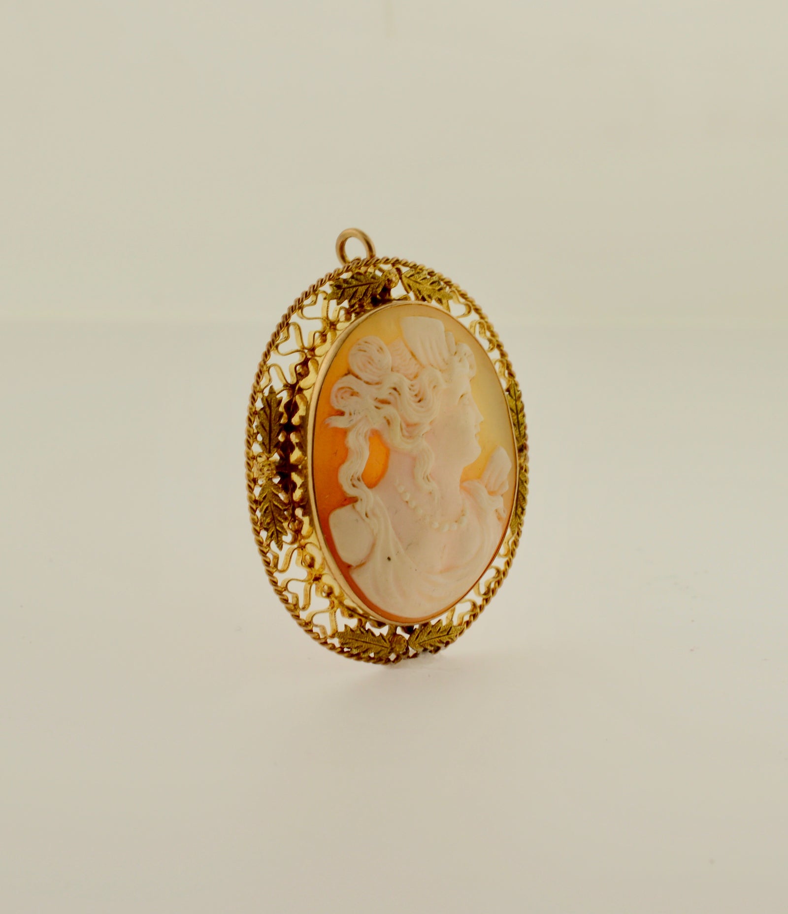 Oval Shell Cameo Gold Brooch/Pendant with a Twisted Border