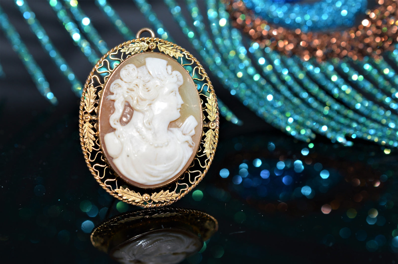 $495.00 USDAntique Shell Cameo Gold Brooch/Pendant with Filigree Border