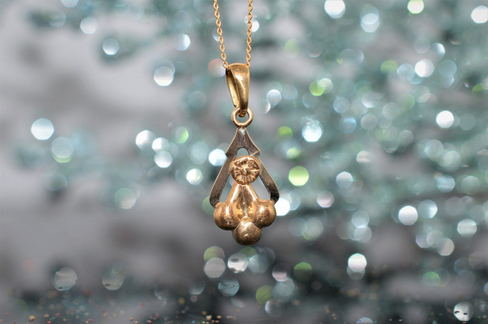 $245.00 USD18K Antique Two Tone Yellow and White Gold Lavalier Necklace