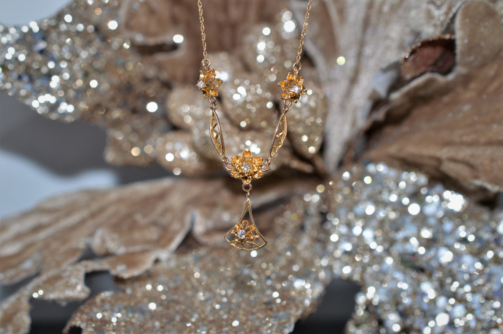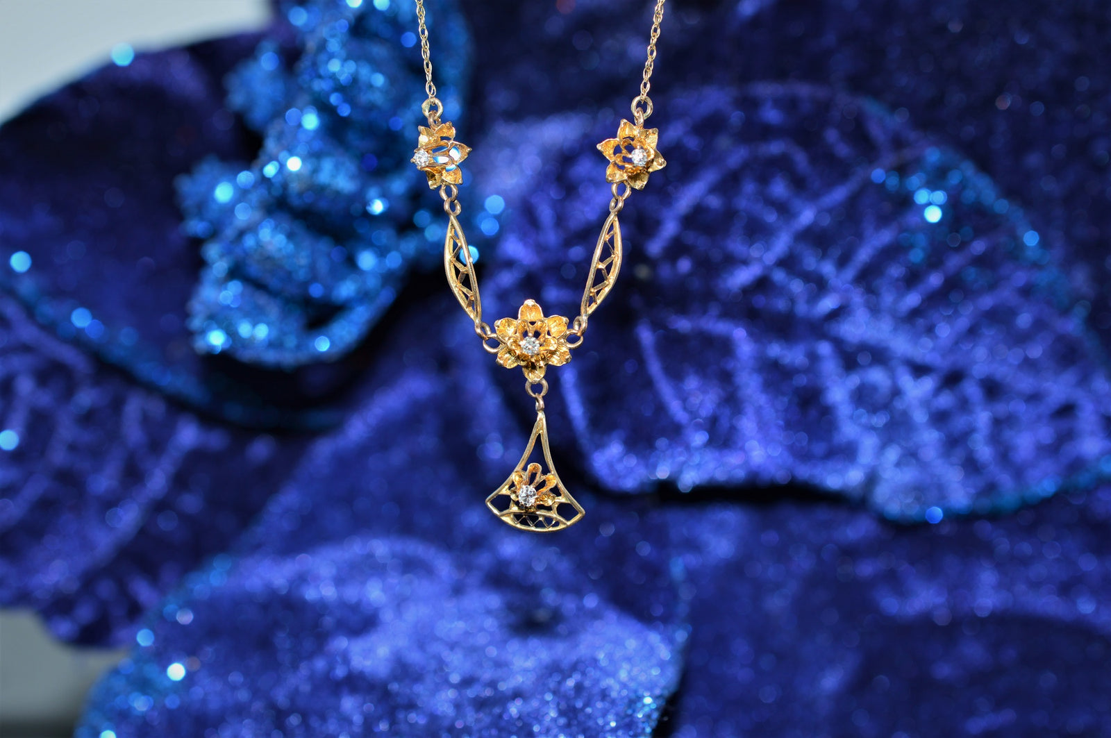 $395.00 USD10K Antique Diamond Y-shaped Gold Lavalier Necklace