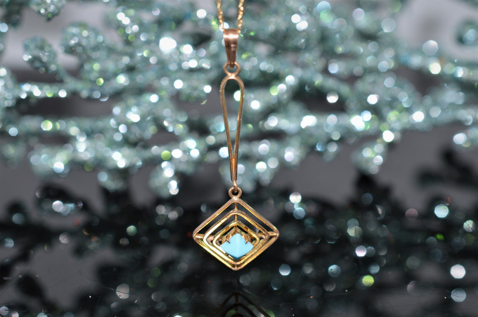 Sold Out10K Antique Turquoise and Gold Lavalier Necklace