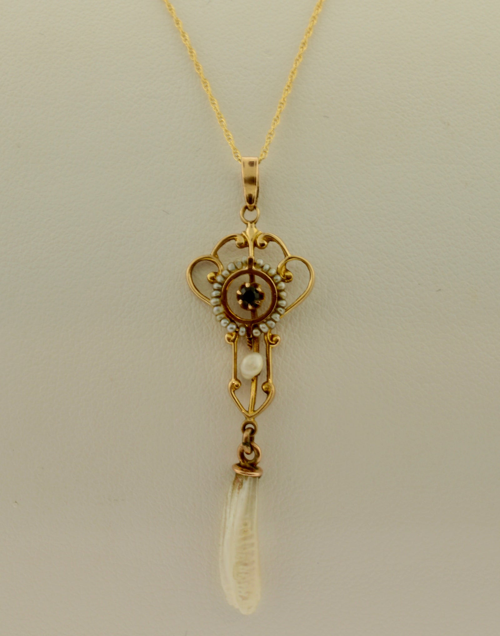 $225.00 USDAntique Pearl and Blue Stone Gold Lavalier Necklace
