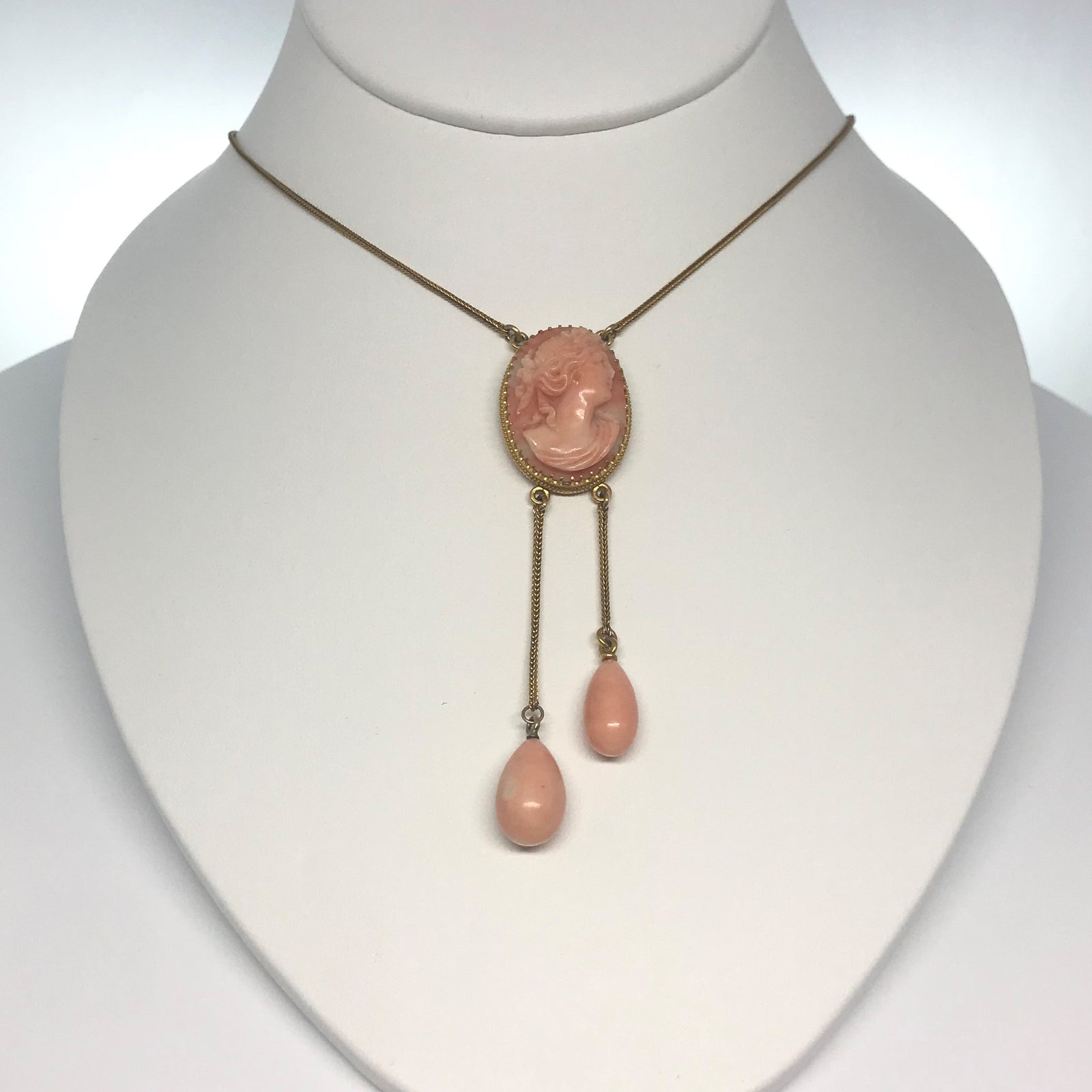 18K Yellow Gold Oval Carved Cameo Antique Necklace