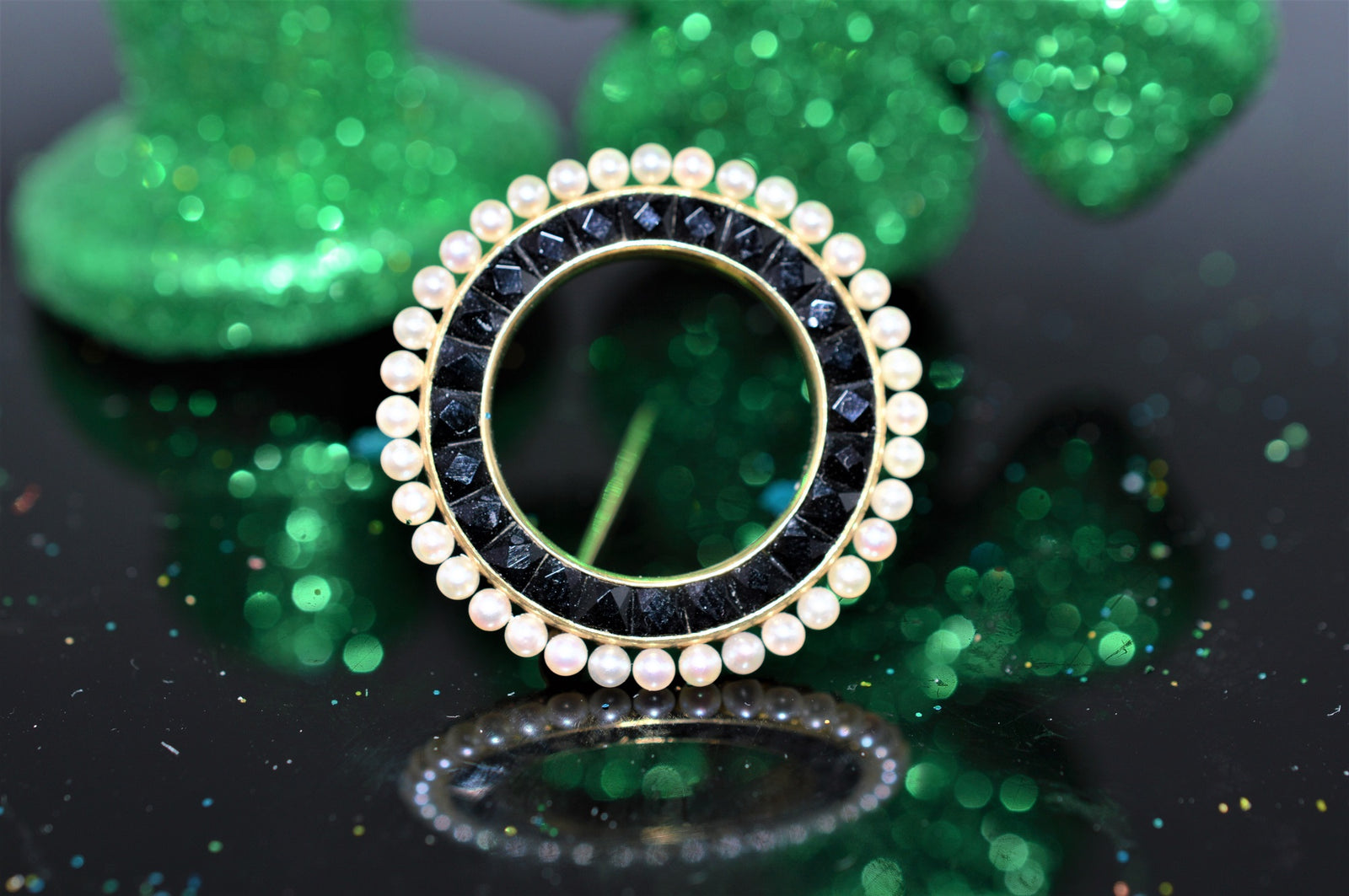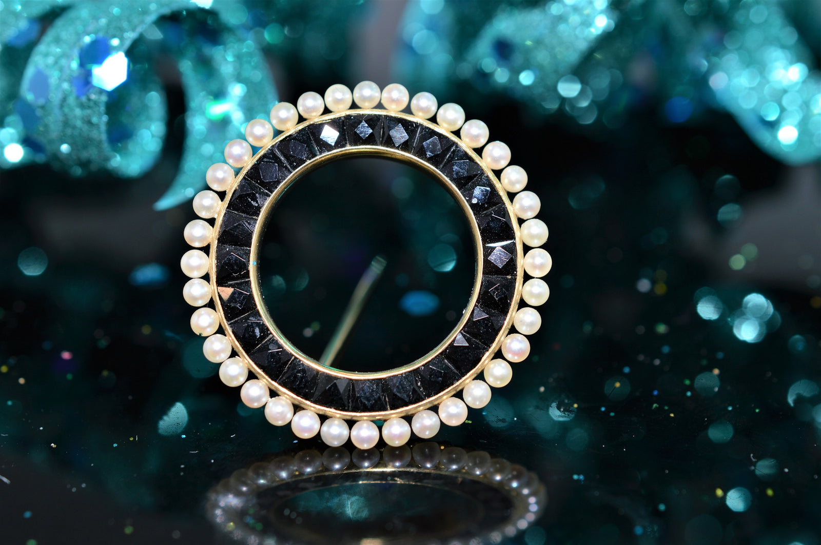 $6,950.00 USD14K Yellow Gold Black and White Circle Brooch with Pearls