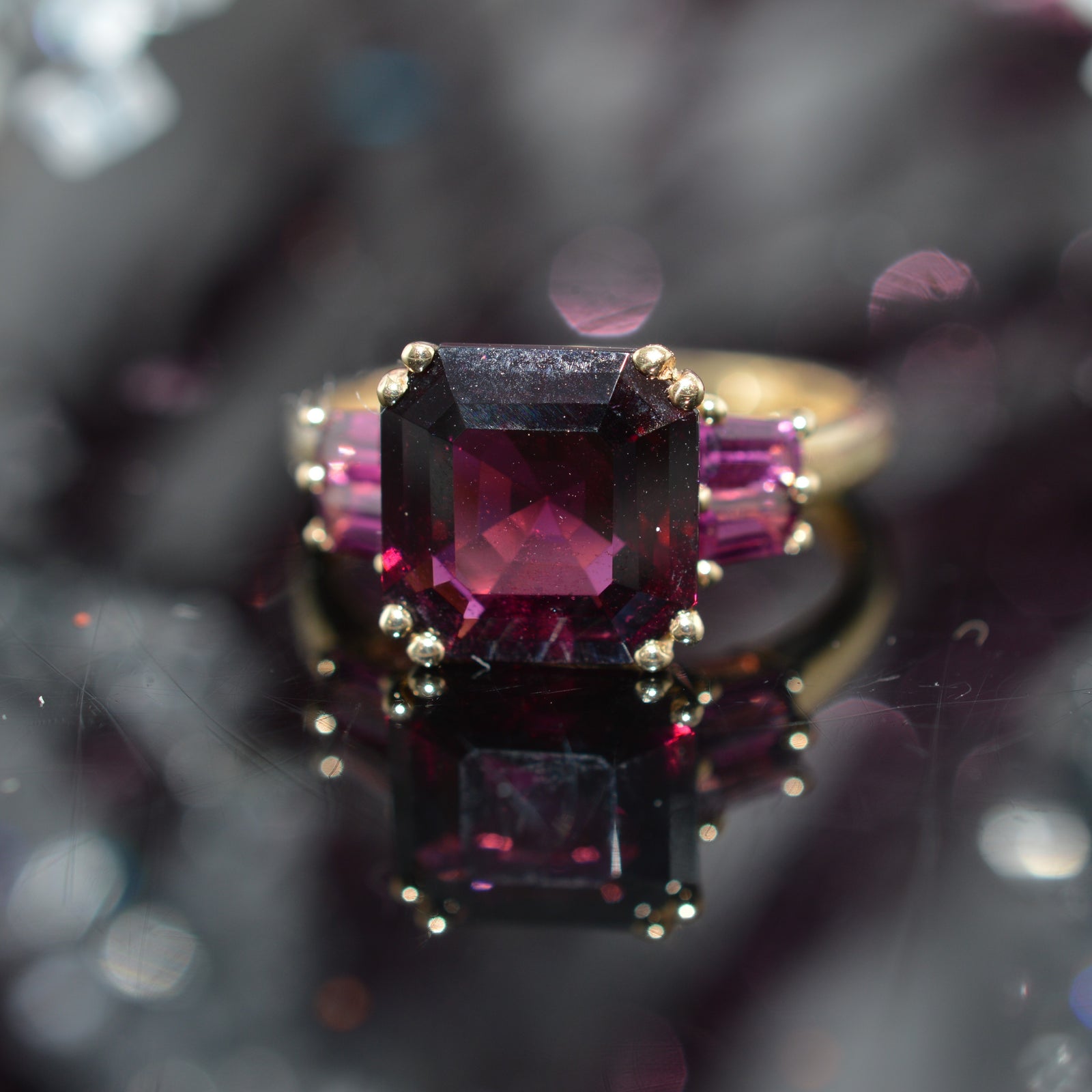 $475.00 USD14K Yellow Gold Asscher Cut Garnet & Amethyst Ring